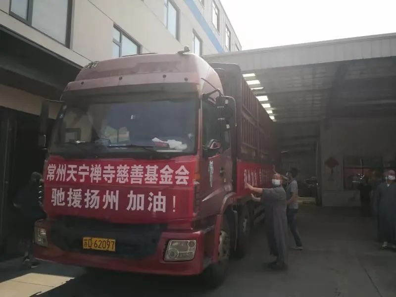当扬州方面急需防疫物资的消息通过扬州市佛教协会传递到常州,江苏省佛教协会副会长、常州市佛教协会会长、常州天宁禅寺方丈廓尘法师立即组织发动四众弟子、常州天宁禅寺慈善基金会的会员与义工们行动起来,在一夜之间就按扬州方面的要求紧急采购了53.45万元,共计72700件抗疫物资,再克服种种困难协调运输车辆。两天内,各地采购来的抗疫物资汇聚到了常州。