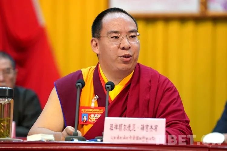 图为全国政协常委、中国佛教协会副会长、中国佛教协会西藏分会会长班禅额尔德尼•确吉杰布作总结讲话 摄影:王淑