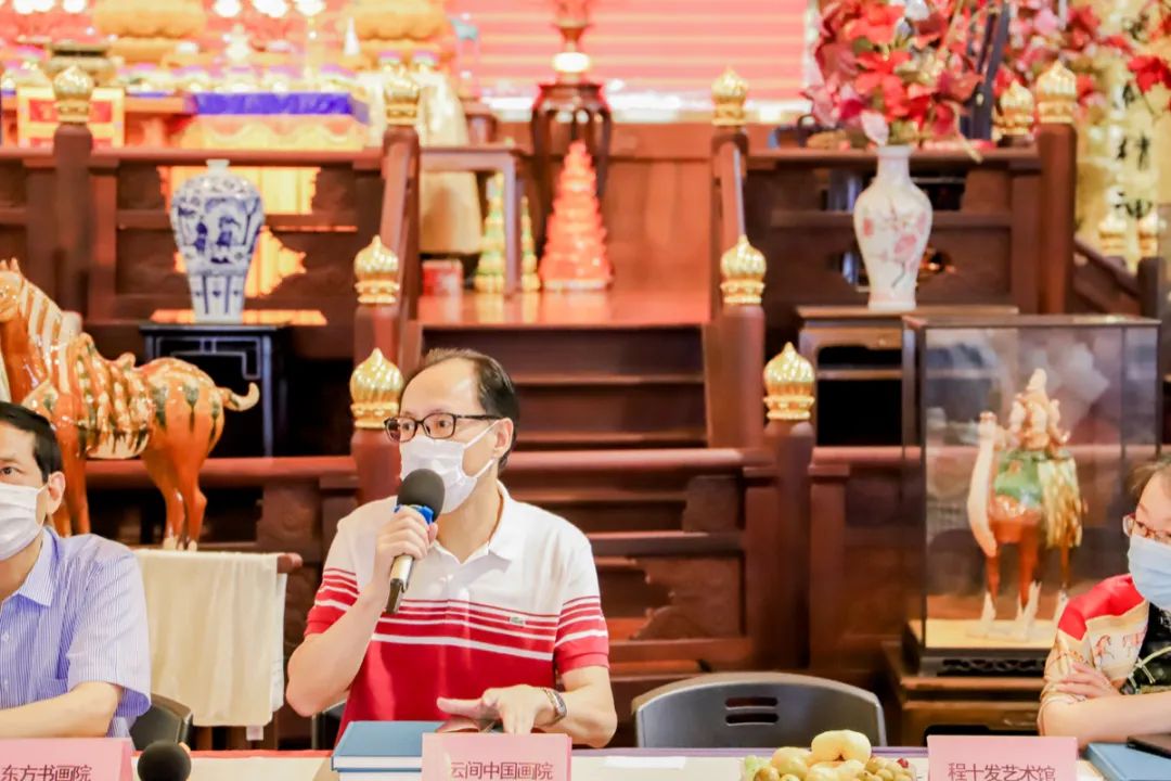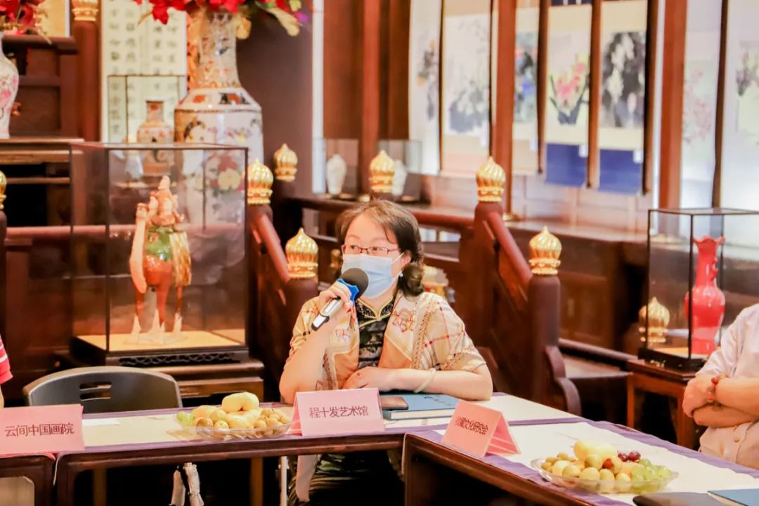 宣布开幕后,来宾移步艺术馆饶有兴致地参观展览。崇恩书画院副院长副院长刘兆麟先生、恽甫铭先生、特聘画师盛庆庆先生、云间中国画院院长吴立强先生、程十发艺术馆馆长陆晓群女士等、东方书画院范振中先生,松江区文联、收藏文化研究会领导及艺术家出席座谈会,“年轻”创新、当代审美、守正出新、老辣闲雅、孜孜不倦、底蕴深厚、意趣横生,是他们对袁继先先生艺术特色的直白而一致的评论,笔墨耕耘不断、再出佳作、艺术常春是他们对袁继先先生共同的美好祝愿,座谈会在其乐融融的氛围中圆满结束。