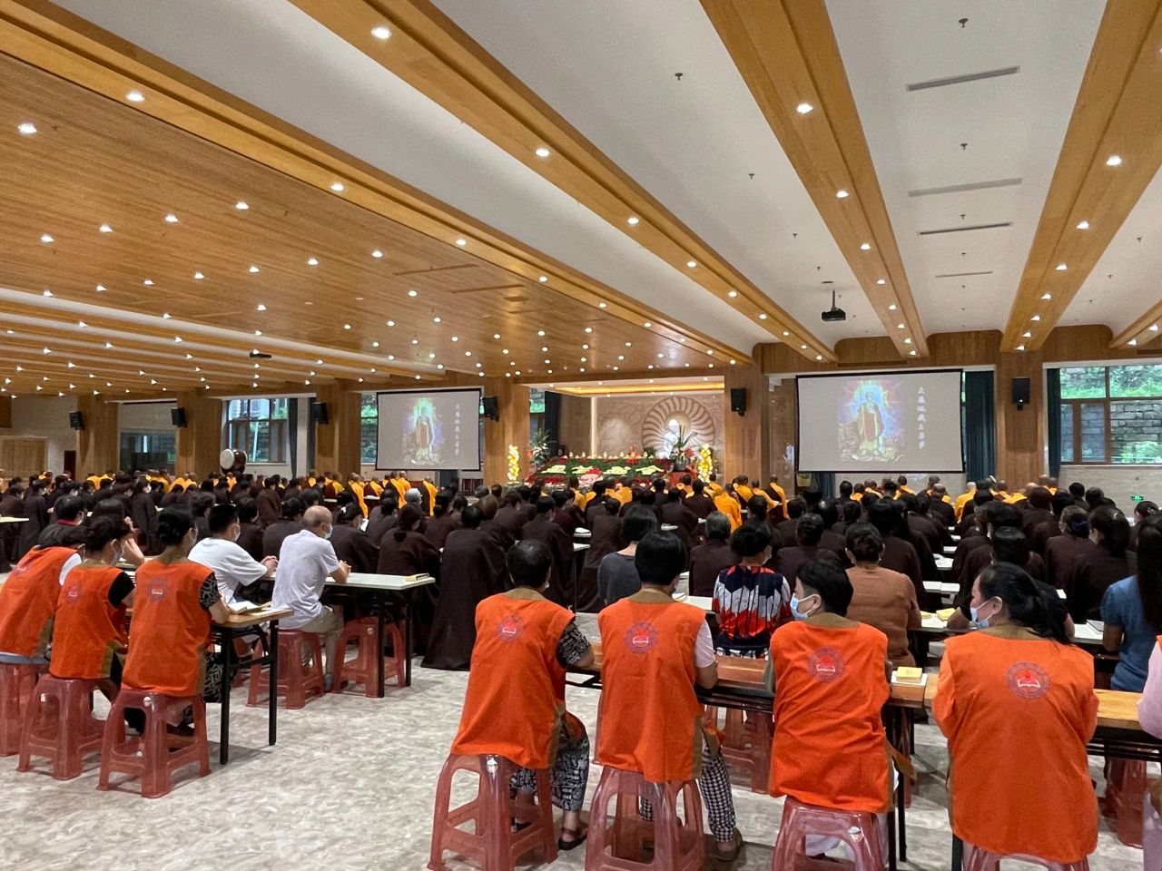 为恭迎农历七月十五的僧团解夏,庆祝僧团结夏安居圆满。常住管理组织、执事班子,以及僧团同仁,非常用心发心,特别安排了系列殊胜庄严法会,其中包括《地藏经》与《盂兰盆经》的要点提示讲座,还有诵念《地藏经》与《盂兰盆经》等,这是落实知行合一、学修一体的重要举措,如果几天坚持参加下来,我确信,坚持参加者一定会同沾法益、法喜充满。