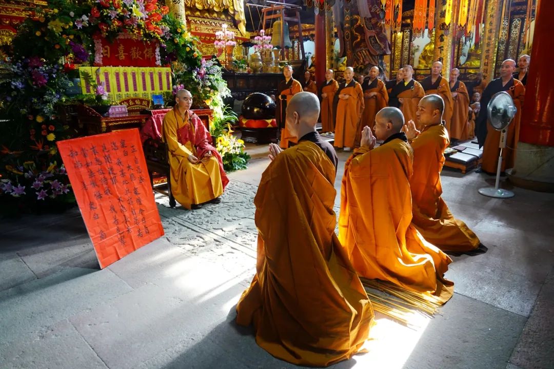 8月22日(农历七月十五),恭迎佛欢喜日(盂兰盆节),本寺谨遵祖制清规,举行年中执事请职仪式,并于早斋后遵佛制解夏自恣。