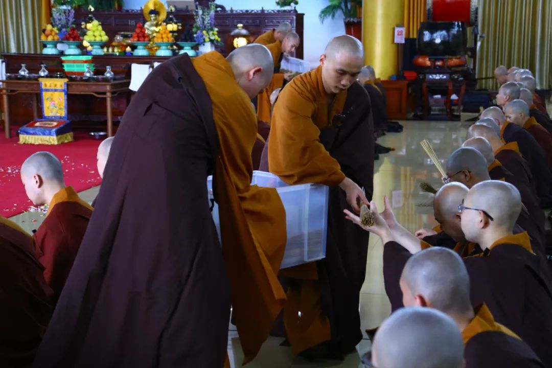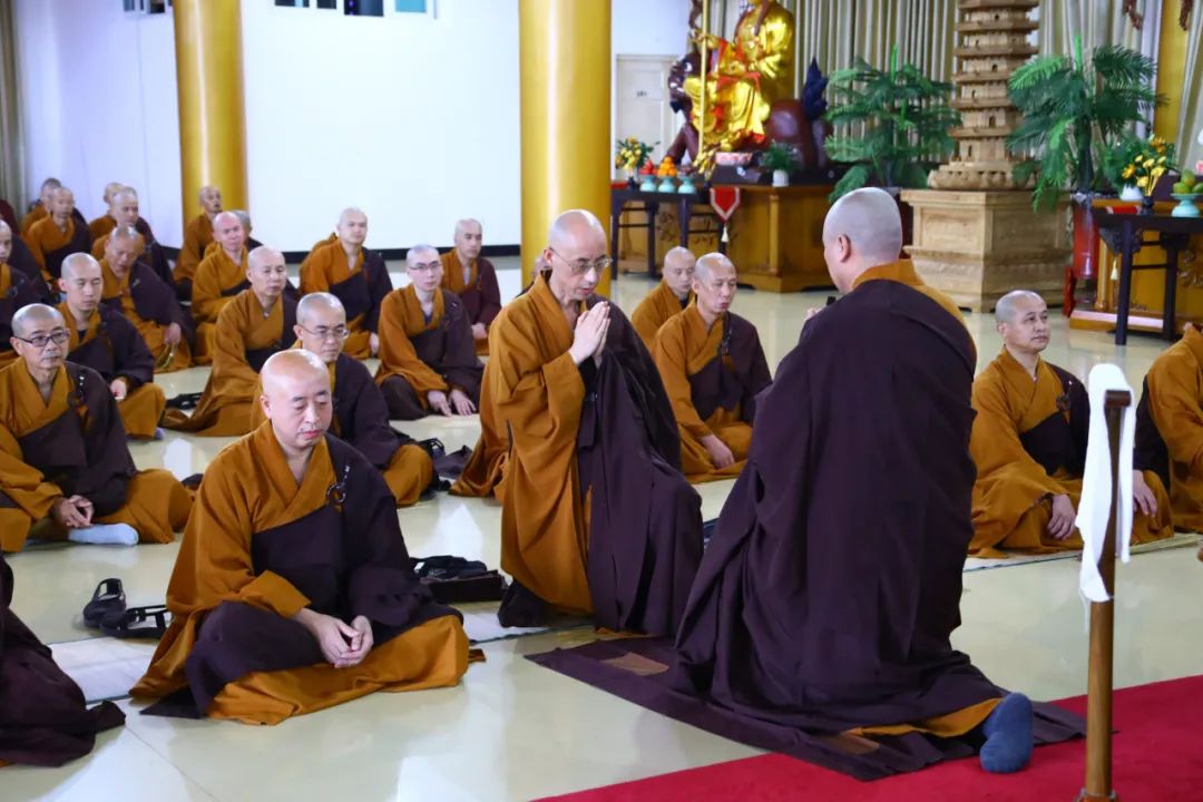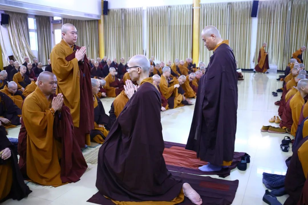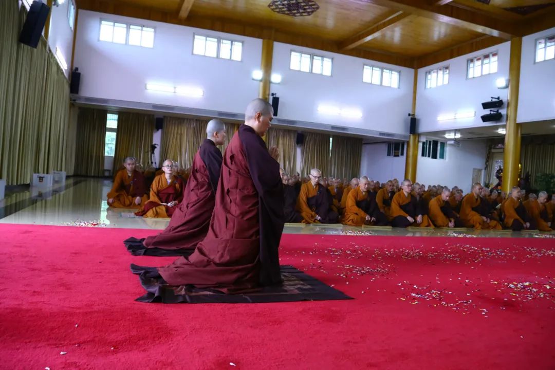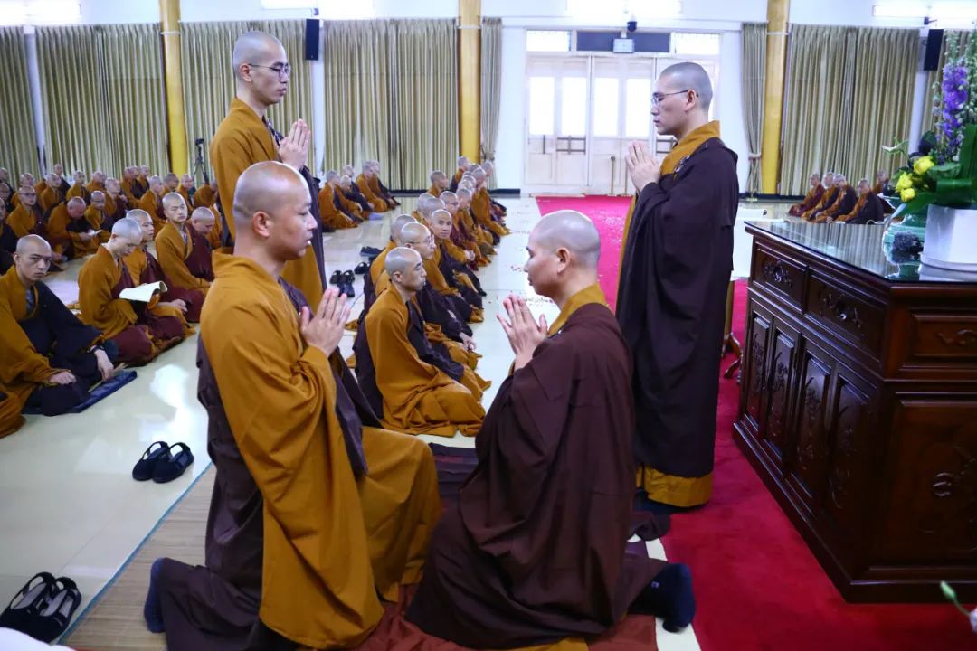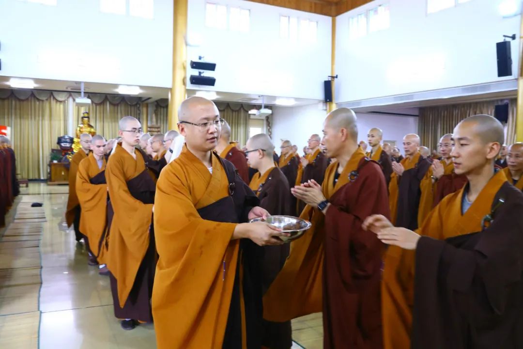 午後三時,平興寺僧眾齊集圓通殿內,和合自恣,計有346人。今年平興寺僧眾分四處自恣,除本寺院之外,另有87位比丘於峰蓮寺等三處自恣。總計433位僧人參與自恣。