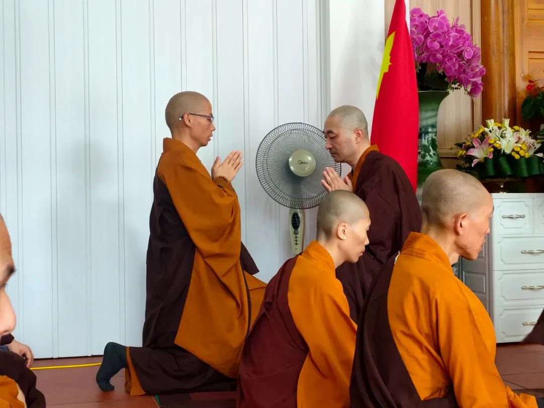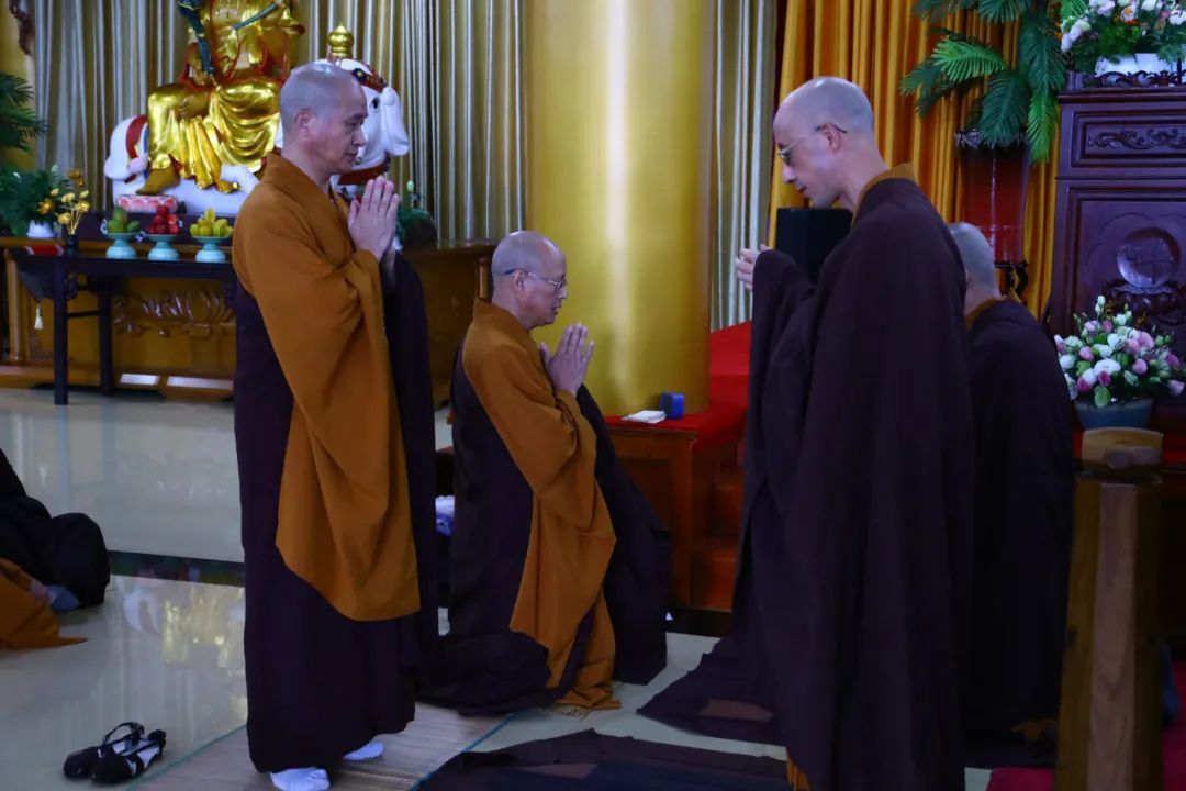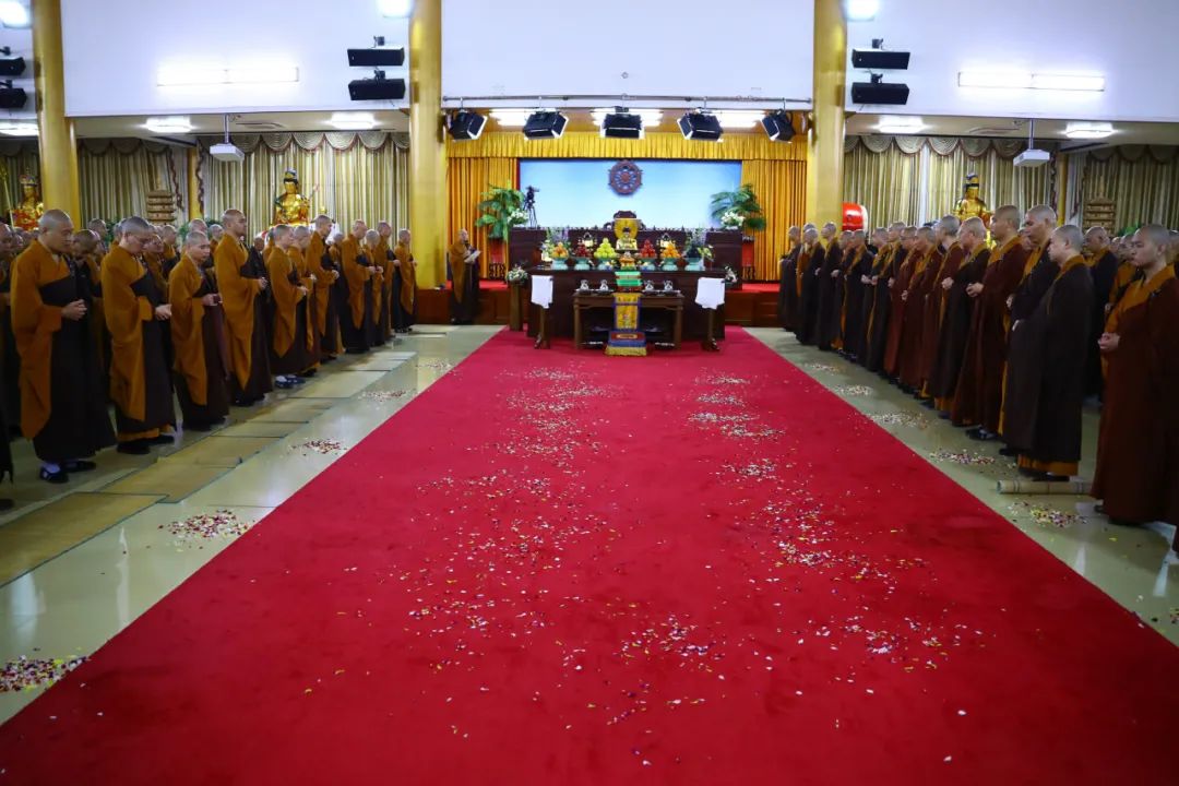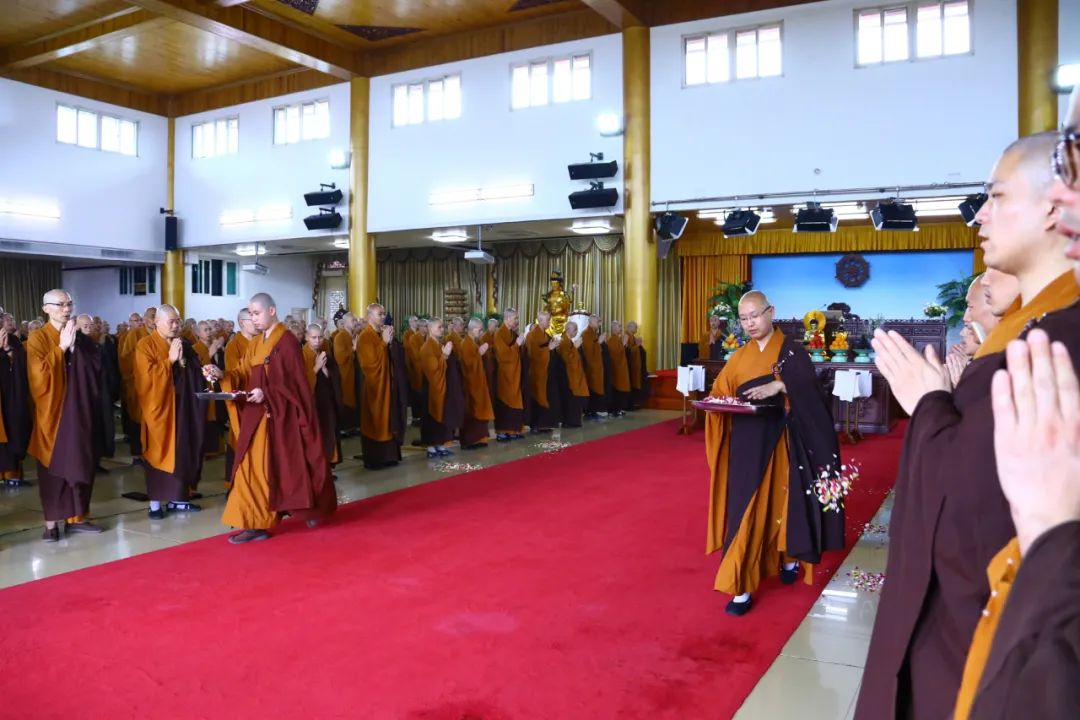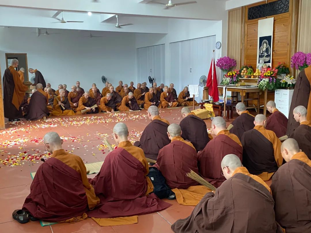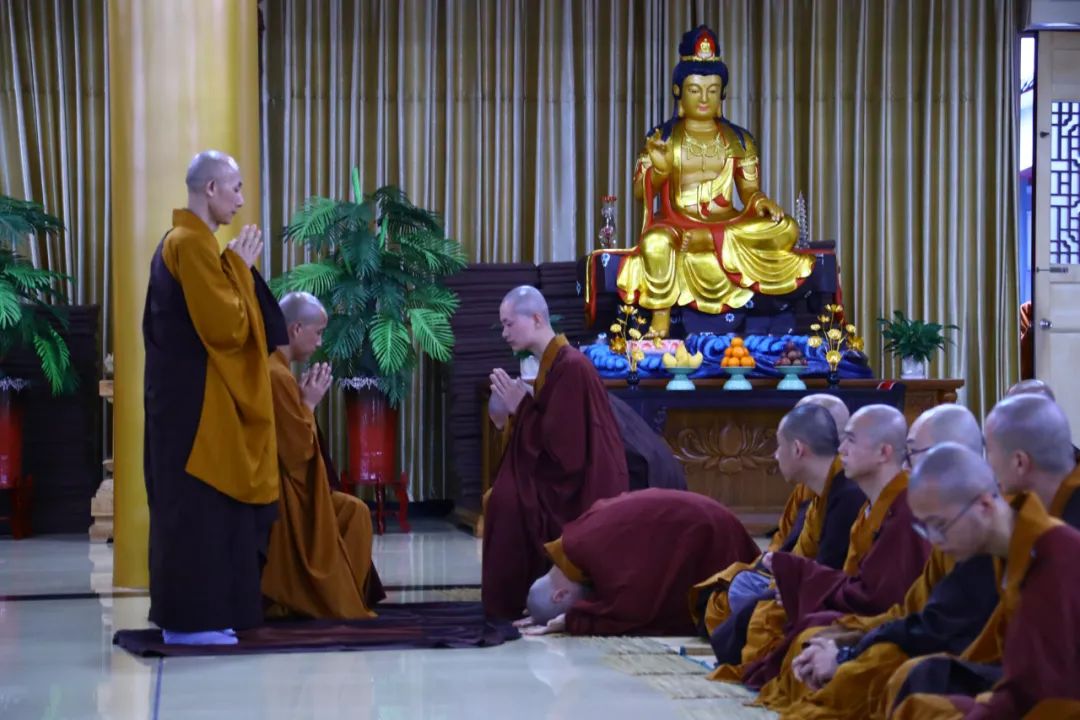 午後三時,平興寺僧眾齊集圓通殿內,和合自恣,計有346人。今年平興寺僧眾分四處自恣,除本寺院之外,另有87位比丘於峰蓮寺等三處自恣。總計433位僧人參與自恣。