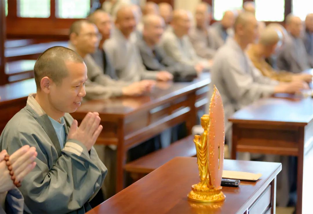 8月21日,东林净土学院本学期期末总结表彰会,在香光讲堂二楼举行,东林净土学院常务副院长会同法师与会。