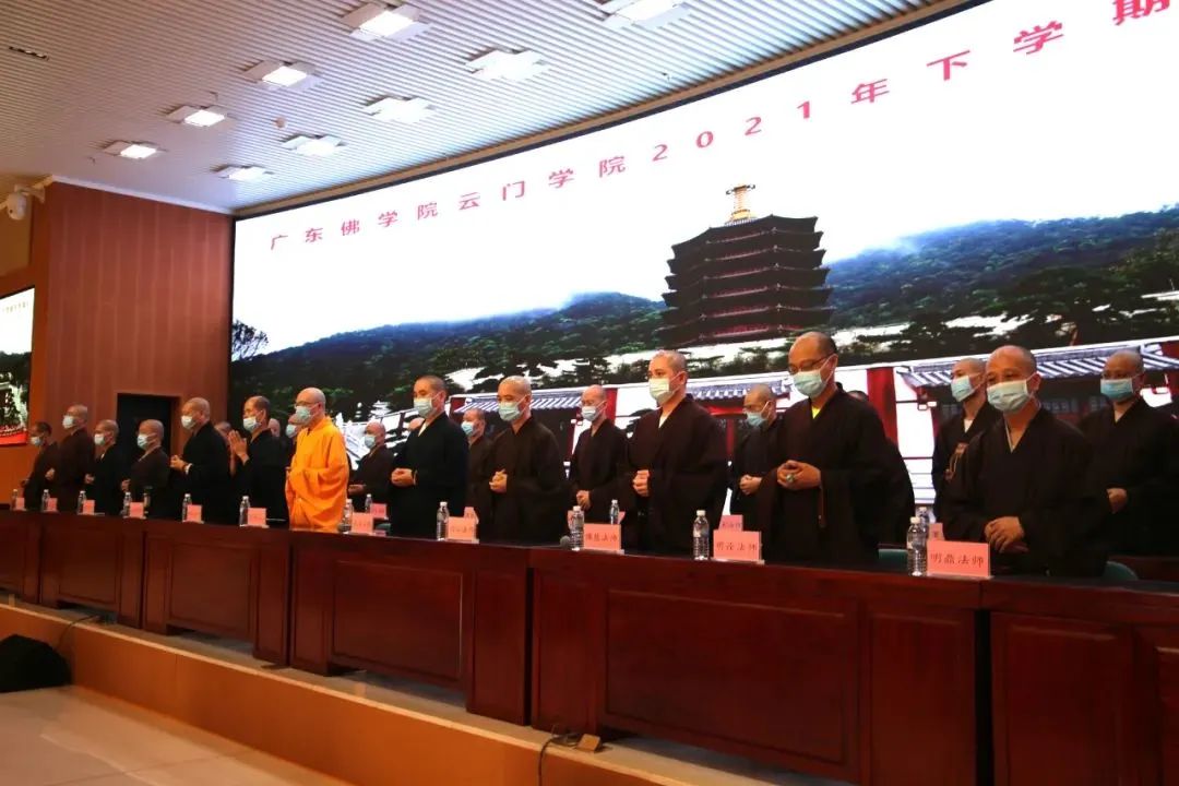 云门寺方丈、广东佛学院云门学院院长明向法师,云门寺首座、学院副院长明海法师,云门寺首座、学院副院长兼教务长性国法师,云门寺首座、监院弘静法师,学院教研室主任明诠法师,学院副教务长闻心法师,学院副教务长佛慈法师,学院教导主任衍照法师,学院教务主任耀空法师,大知客师耀衡法师等法师和全体学僧参加了开学典礼。