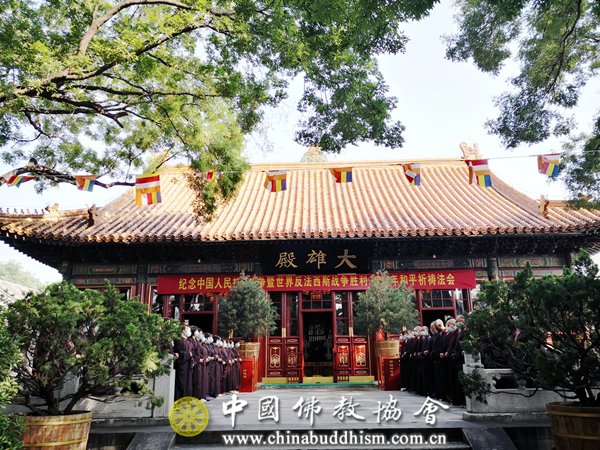2021年9月3日上午,中国佛教协会在北京广济寺庄严举行“纪念中国人民抗日战争暨世界反法西斯战争胜利76周年祈祷世界和平法会”,以铭记历史,缅怀先烈。