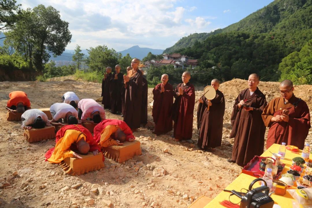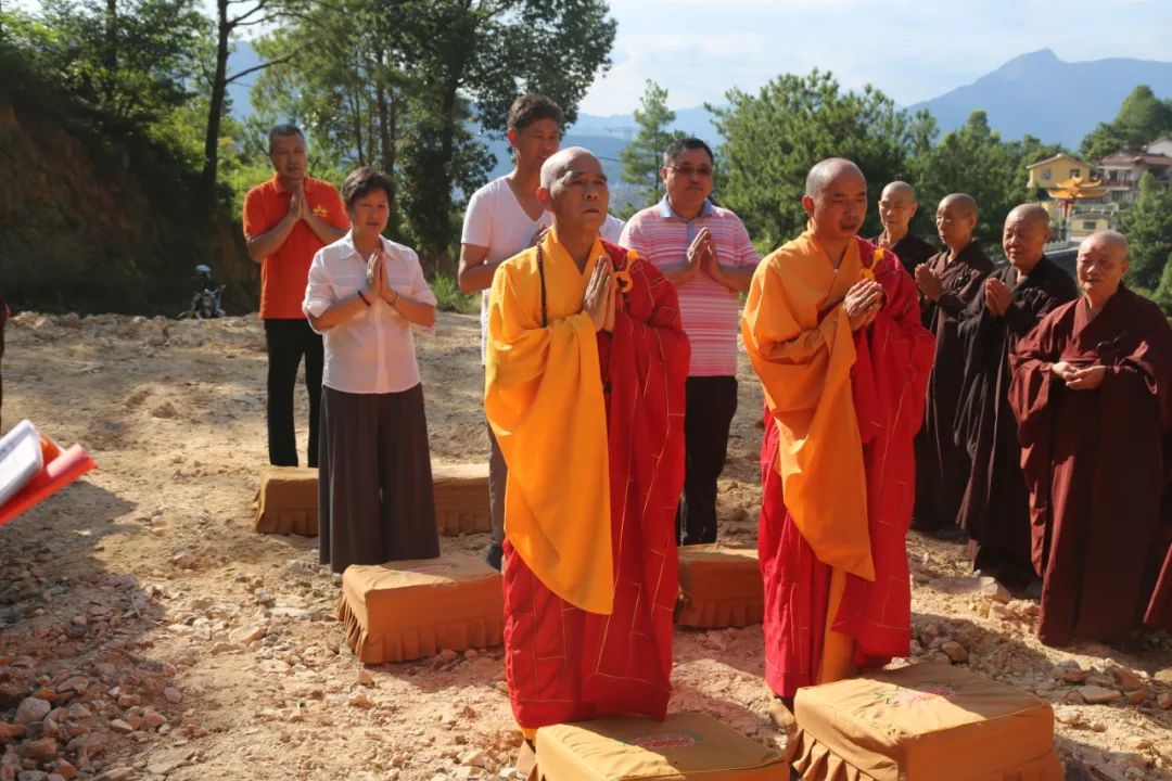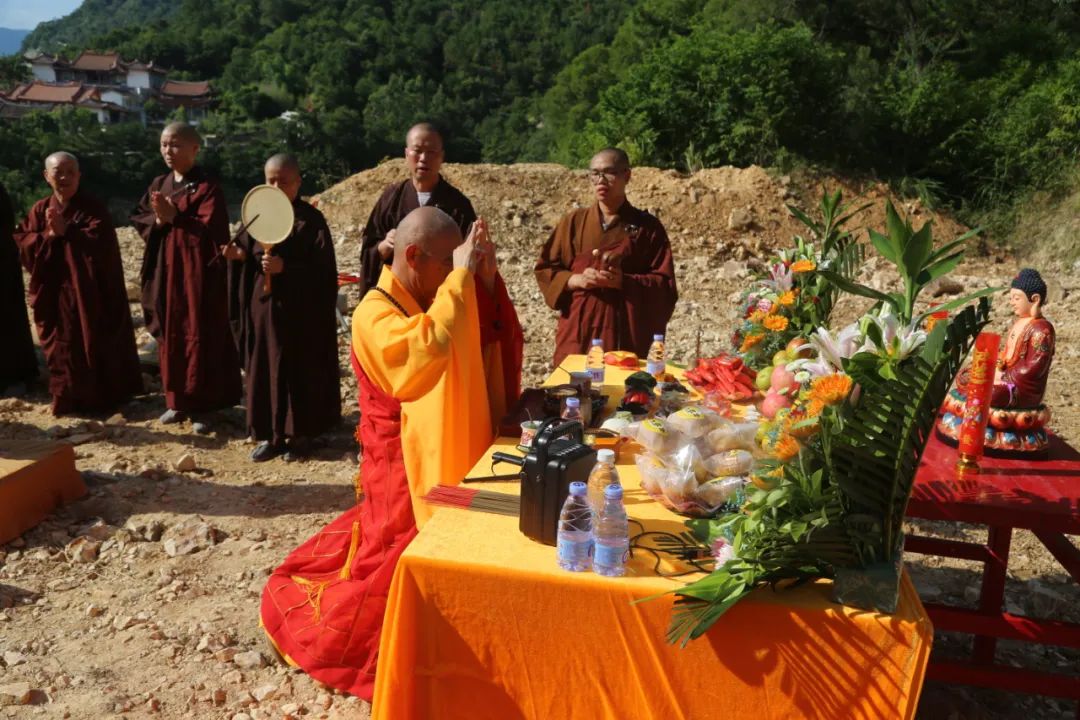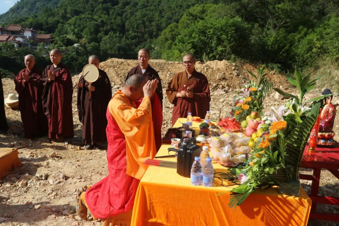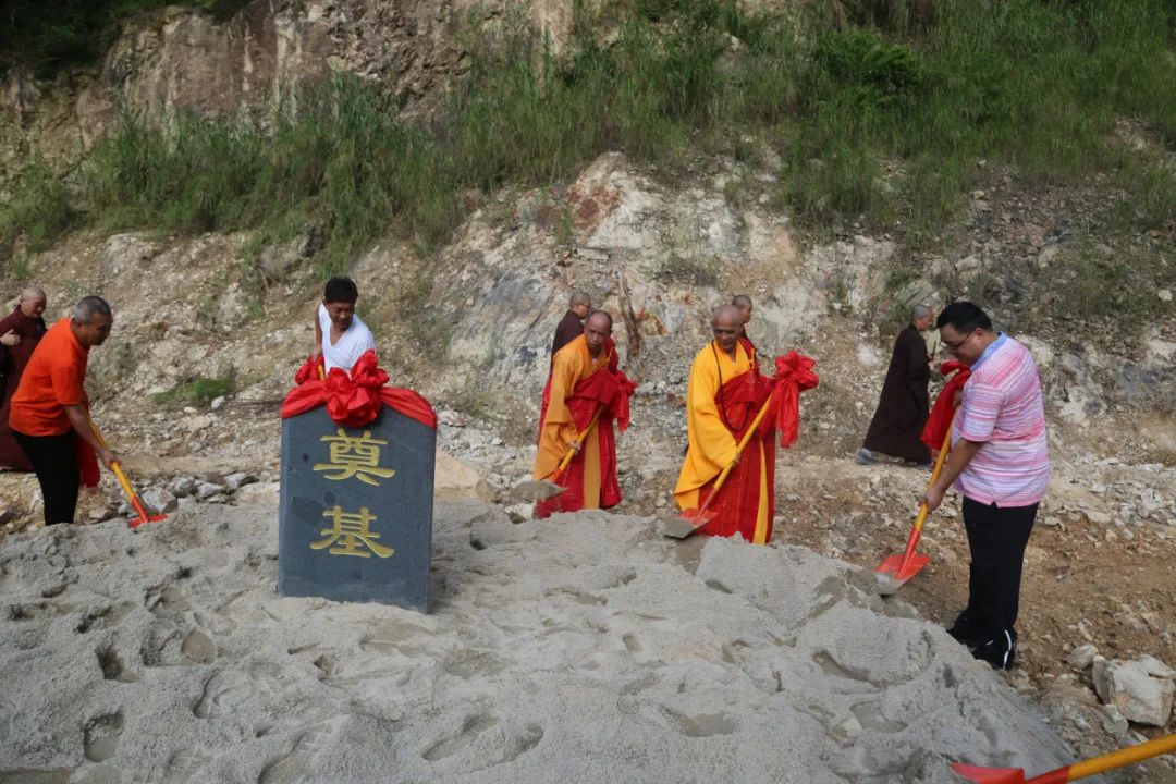 在浑厚韵动的楞严咒心中,妙敬长老与性龙法师挥锨铲土为楞严讲坛进行奠基。