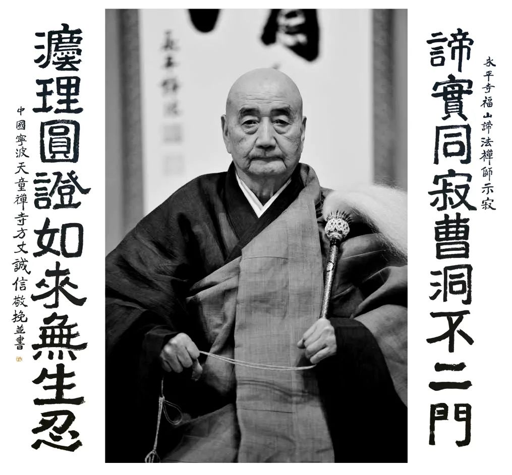 福山諦法长老,1932年11月生于东京都,早年毕业于驹泽大学佛学专业,佛学造诣深邃,修持精进。自1977起,历任永平寺顾问、别院监院、副贯首、贯首,直到2020年9月退董,住锡永平寺四十多年。
