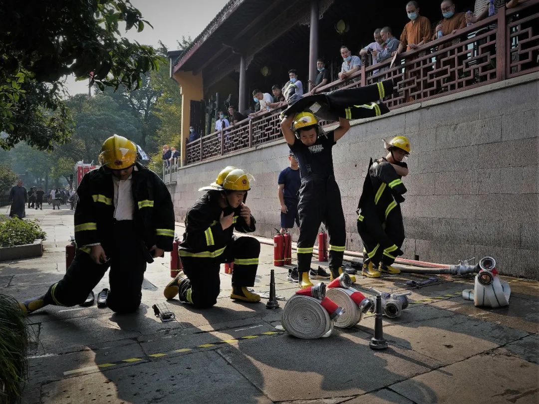 在随后的消防技能比武中,14支参赛队分别派出队员参加了消防安全隐患检查和综合出水操(50米提灭火器跑+原地着装+45米出2支水枪操)等项目的激烈角逐。