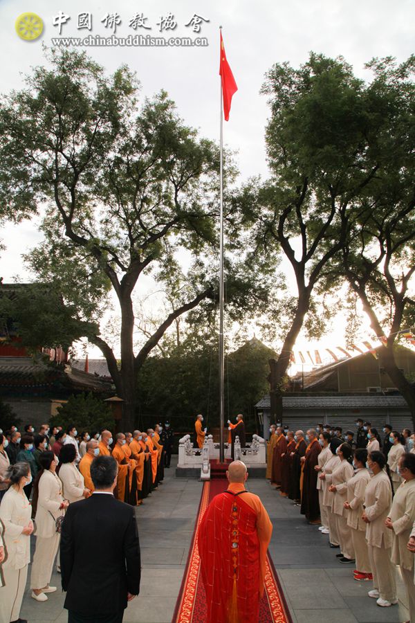 2021年10月1日,中国佛教协会在北京广济寺举行升国旗仪式