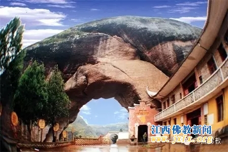 石巩寺周围地貌奇特,山色秀丽,古剎入口两侧,各有一山拔地而起,一座似狮,一座如象。从寺内沿石级而上,约百米开外便有巨石如拱,石巩寺就坐落在石巩 山上的石巩洞中。“石巩”即“石拱”,如桥横空,巩上岩山崩裂、天然形成三叠,是丹霞地貌的最典型代表,状如太极图,故又称太极岩,跨径40余米。最上 岩,高广7尺,名为夹巩。中岩高一丈五、六尺,有方砖两块,分别镌刻“马祖法窟”、“百丈清规”,嵌入石壁。岩中有石榻,可以平卧,可以盘腿而坐。西有一 折缝,唯蝙蝠可至,露出豆标竹子一束,“马祖板”一块,相传为唐代马祖禅师戏占抛入,千年不坏。抚州郡守张伯琮书有“石巩”二大字,每字宽丈余,刻在倒悬 苍崖上,字迹依衡可辨。