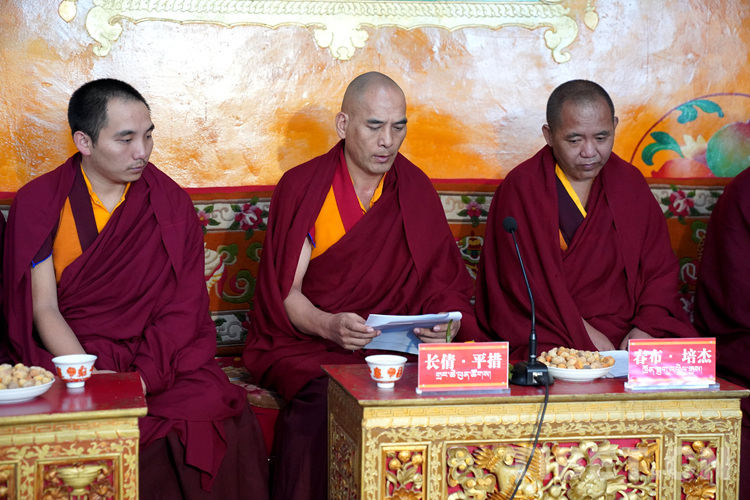 图为喇嘛次仁徒弟平措在座谈会上发言 摄影:王淑
