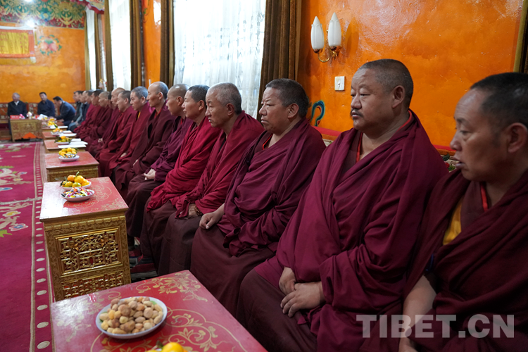 图为班禅在纪念喇嘛次仁座谈会现场 摄影:王淑