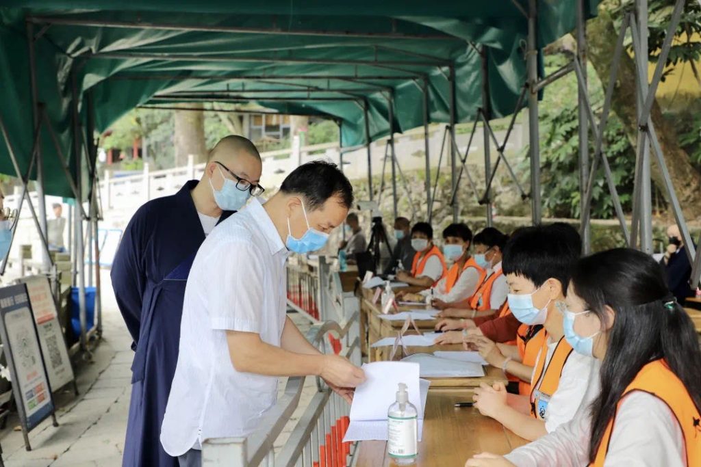 据了解,天童禅寺、慈云庵为确保传戒法会安全有序、如法如律,做了大量积极而充分的准备工作。一是组建了传戒活动筹备工作领导小组,落实责任制度,细化分工,岗位明确,坚持每人每日一表一总结,精准到位服务;二是配合属地统战、民宗部门,召开协调会,多次组织现场消防、防疫演练、检查,进一步部署落实疫情防控措施,严格实行全封闭管理;