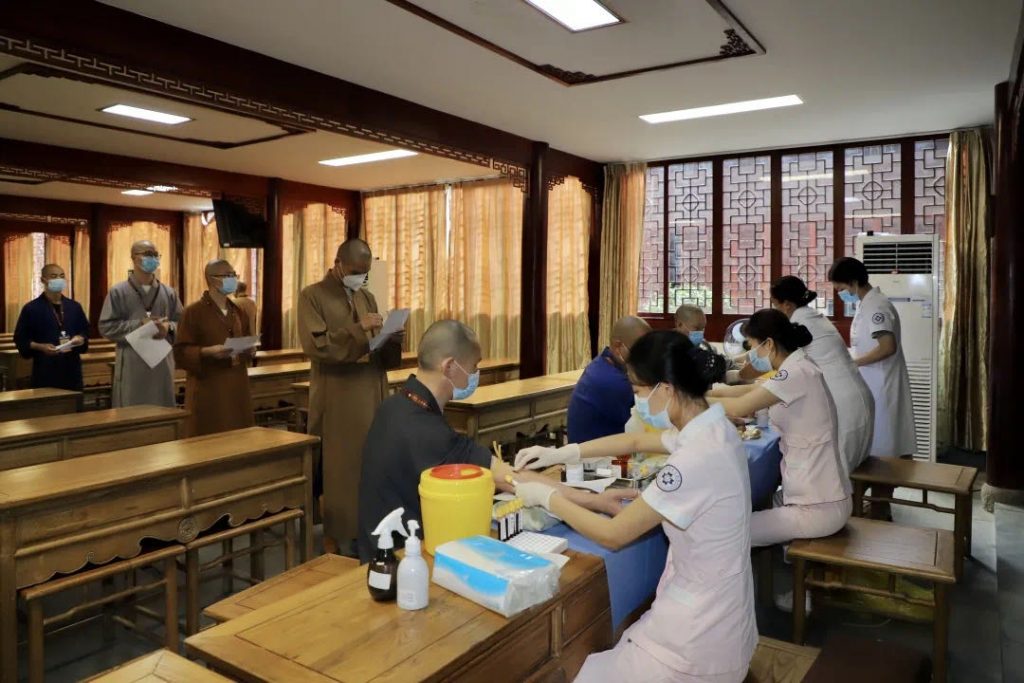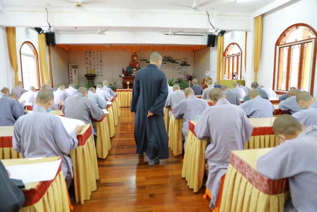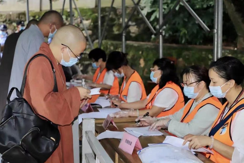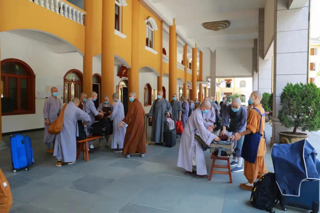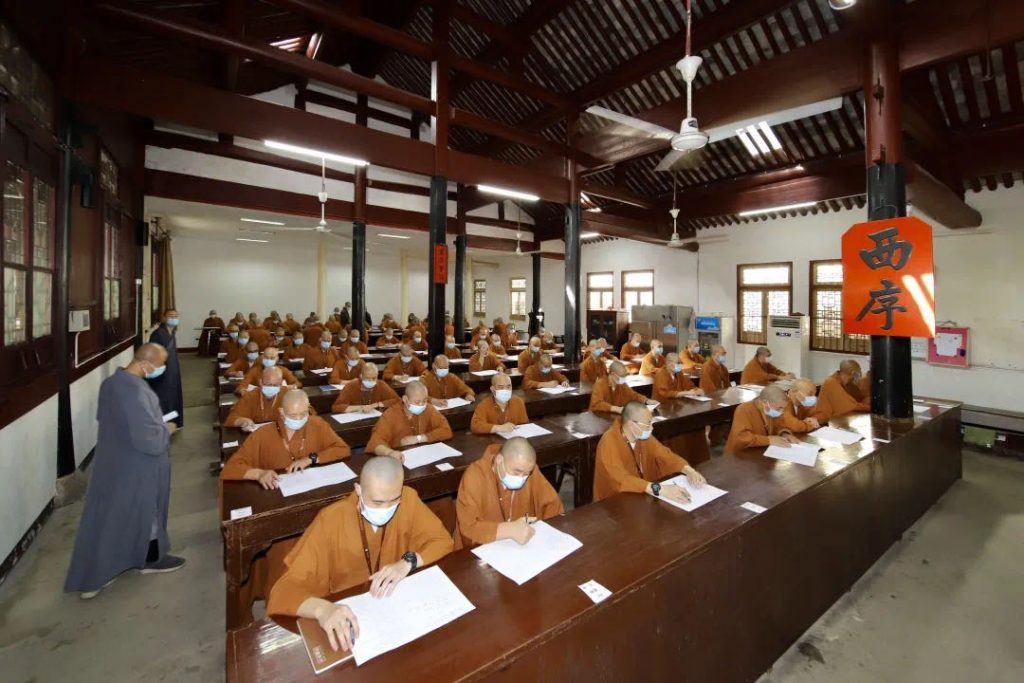 三是制定了严密的疫情处置应急预案和举措,如对寺院进行全面消毒,实行戒场内所有人员每日健康监测登记记录,严格检查戒子行程、健康状况,并实施排查、隔离、核酸筛查、健康监测等相关管控措施;四是严把传戒入口关,如严格考核戒子五堂功课、组织佛学基础知识笔试、面试等。