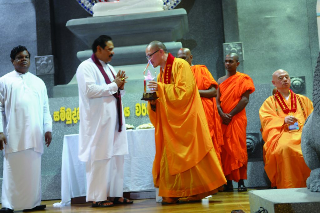2012年5月,时任斯里兰卡总统拉贾帕克萨先生率斯国官员于科伦坡其总统府为本性法师亲颁佛教贡献奖
