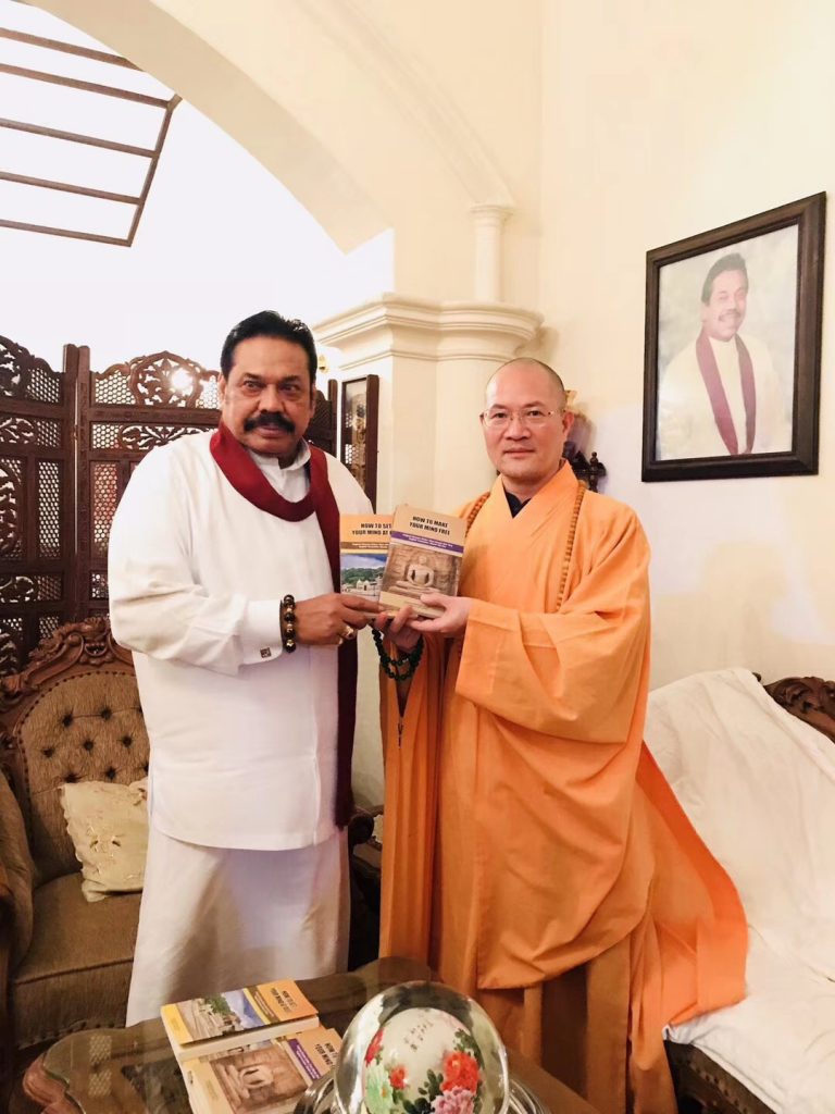 本性法师向拉贾帕克萨先生赠送斯里兰卡首发的著作
