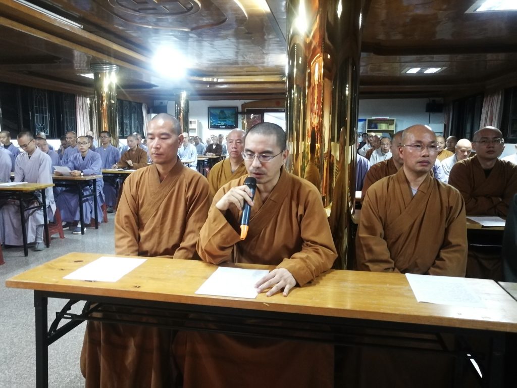 刚才,知客师为我们宣读了中国佛协最近发布的《佛教教职人员行为守则》。该守则内容分五个部份:即爱国爱教,守法遵规;以戒为师,提振教风;勤修三学,提升素质;践行六和,增进团结;服务社会,利乐众生。同时,当家师、副院长、法师代表等,也为我们做了很好的学习体会报告。这里,我也说几点,目的是:既与大家共同学习,互相勉励,也为大家抛砖引玉,促进深入学习。