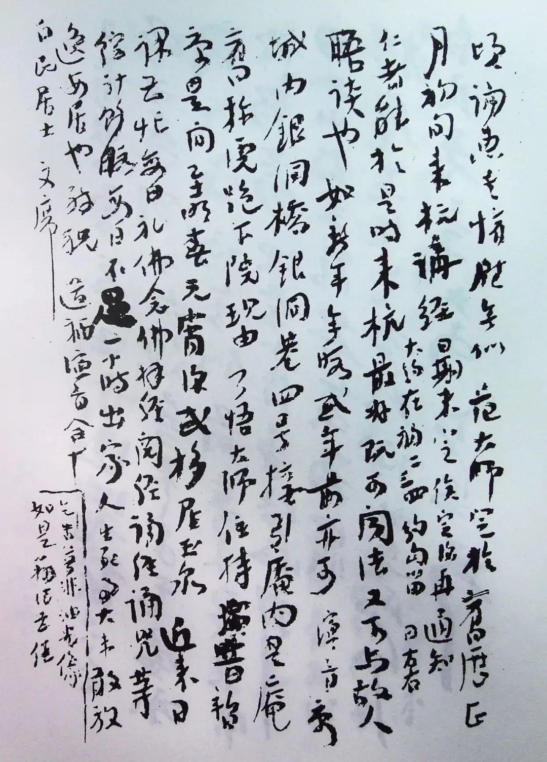 《地藏经》共印多少,如何分法,今尚未悉。朽人不久将往他方,今移居杭州城内银洞巷六号虎跑下院暂住,料理未了诸事。惠复乞寄上海江湾镇立达学园丰子恺居士转交,恐朽人不久或去杭也。承询所需,俟后有需,当以奉闻。敬谢厚意。此未宣具。