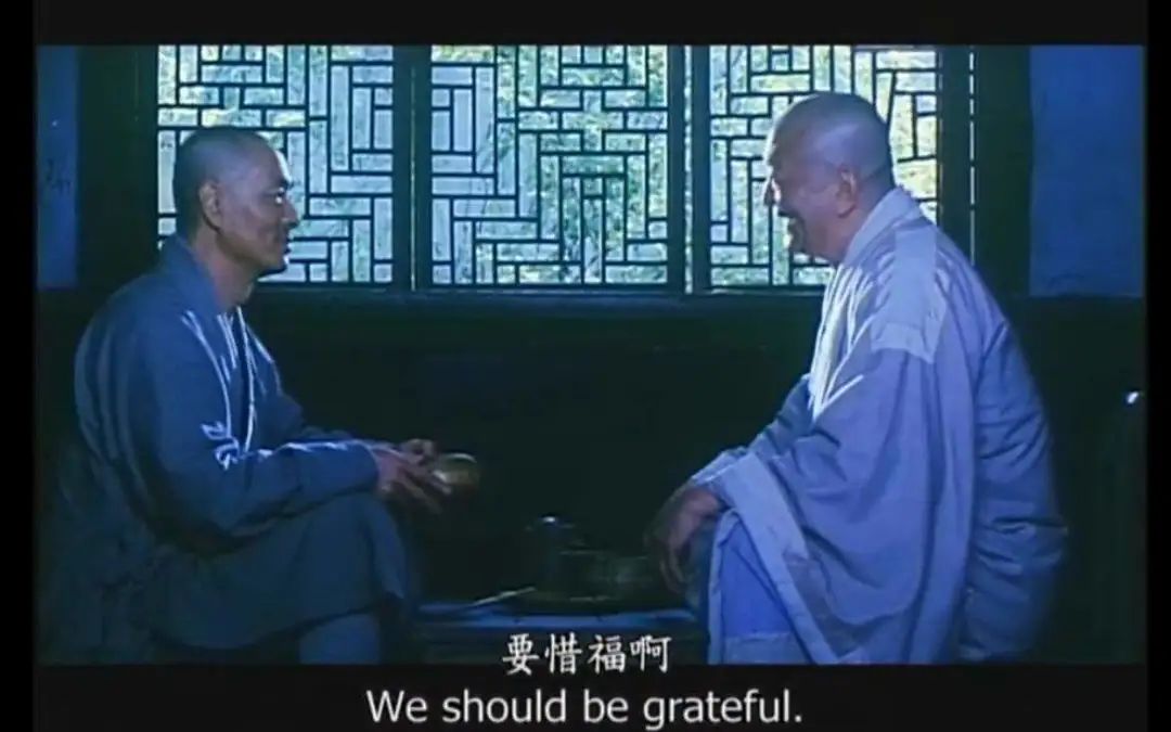 “寺役去通报时,弘一法师从包袱里取出一件大袖的僧衣来,恭而敬之地穿上身,眉宇间异样地静穆。我是欢喜四处看望的,见寺役走进去的沿街的那个房间里,有个躯体硕大的和尚刚洗了脸,背部略微佝着,我想这一定就是了。果然,弘一法师头一个跨进去时,就对这位和尚屈膝拜伏,动作严谨且安详。我心里肃然,有些人以为弘一法师该是和尚里的浪漫派,看见这样可知完全不对。”