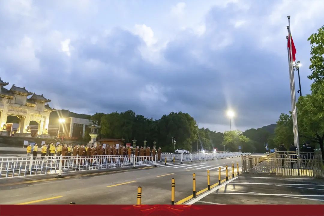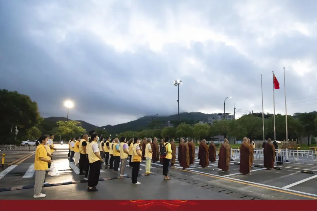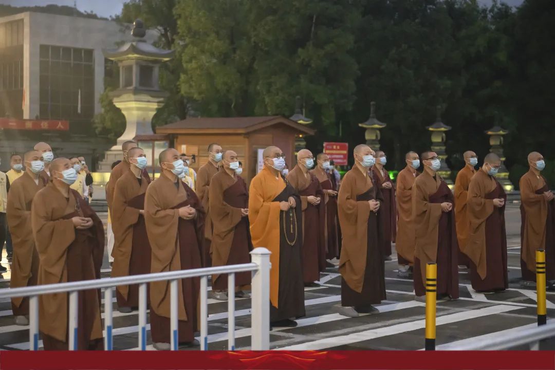 2022年10月1日,时值国庆节,珠海普陀寺常住僧俗二众于山门前广场隆重举行升旗仪式,庆祝中华人民共和国成立73周年,祝福祖国繁荣昌盛、国泰民安。