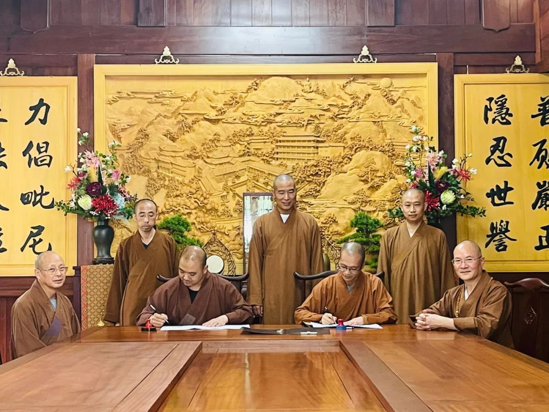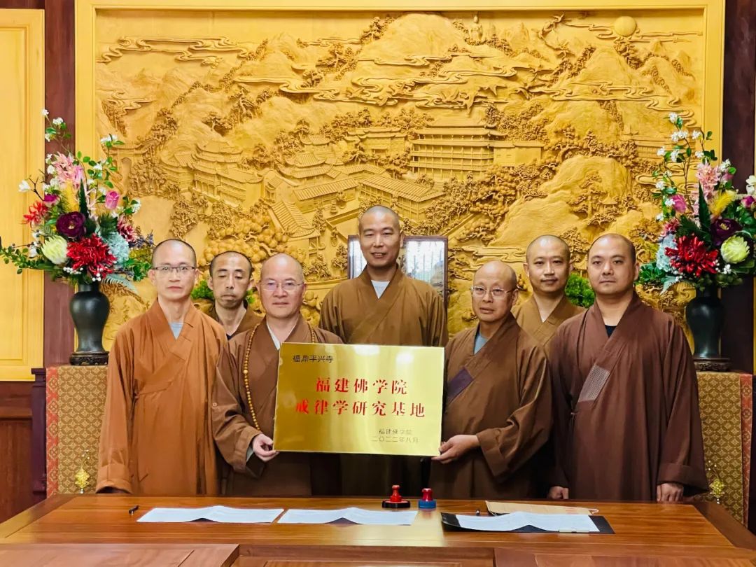 9月21日,福建佛学院戒律学研究基地于太姥山平兴寺挂牌,福建省佛教协会名誉会长、太姥山平兴寺住持界诠法师,福建省佛教协会常务副会长、福建佛学院院长本性法师,太姥山平兴寺监院志宽法师,福建佛学院副院长振宇法师等出席挂牌仪式。该基地由福建佛学院与太姥山平兴寺共创联办,共同致力于培养学戒、知戒、尊戒、守戒的僧伽人才,首批学员36人。