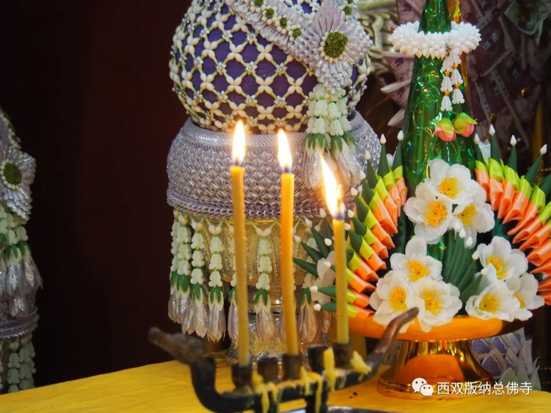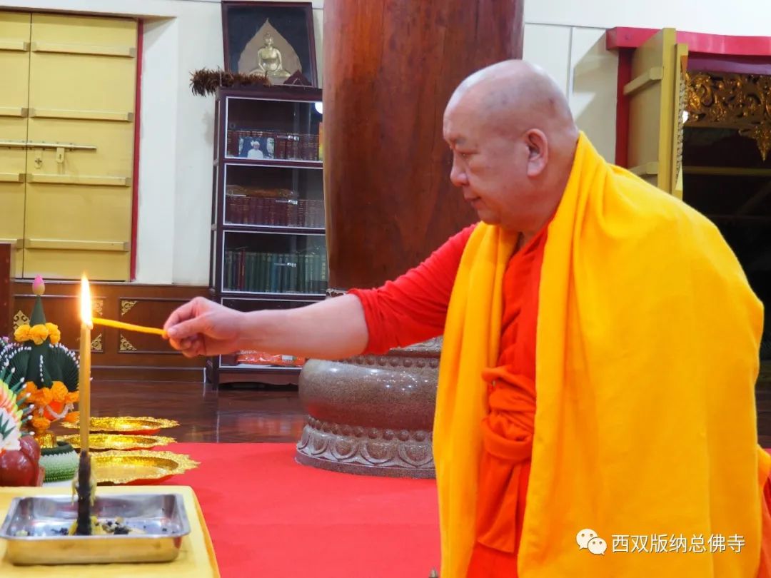 首先,帕松列龙庄勐主法,并点燃蜡烛。而后带领全体法师礼敬佛法僧三宝,依规虔诚念诵消灾延寿经和护卫祈福经,共同祈愿诸佛加持,祈愿病毒疫情早日得到控制,医护人员十方檀那平安健康,祈愿国泰民安,社会稳定,边疆安宁。祝愿患者早日康复。最后全体法师共同念诵滴水功德回向经,祈愿新型冠状病毒肺炎感染疫情灾厄早日消除。祈愿奋战在抗疫情一线人员平安。