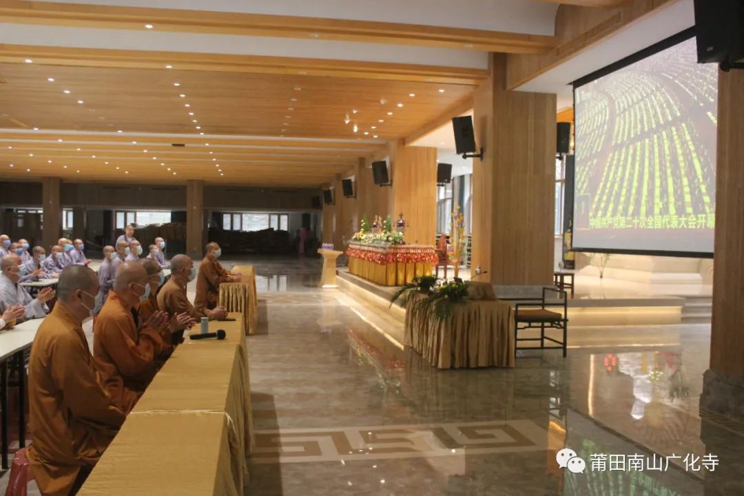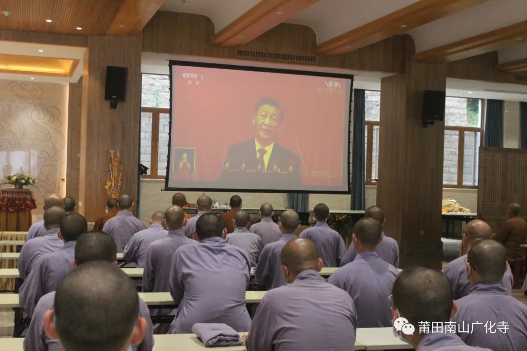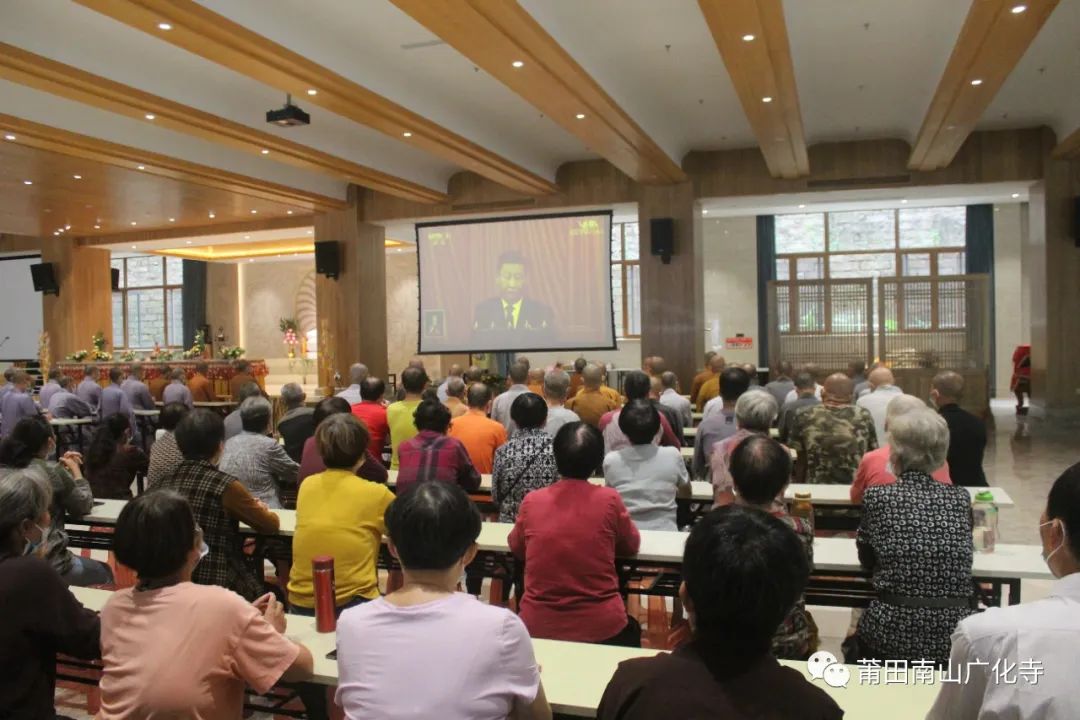 10月16日,莆田南山广化寺和福建佛学院男众部组织常住僧众、学僧和护法居士共同收听收看党的二十大开幕实况直播,热切关注这个对党和国家具有深远意义的盛会。