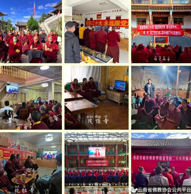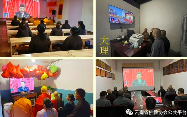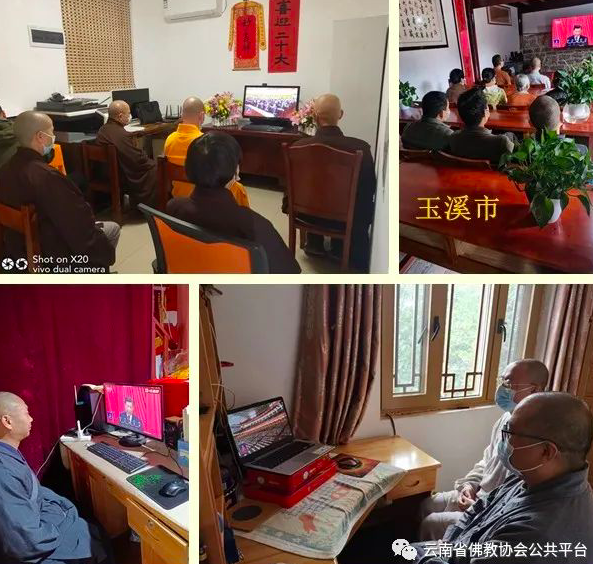 中国共产党第二十次全国代表大会16日上午10时在北京人民大会堂开幕。云南省三语系佛教界收看了开幕直播(图片不分先后)。