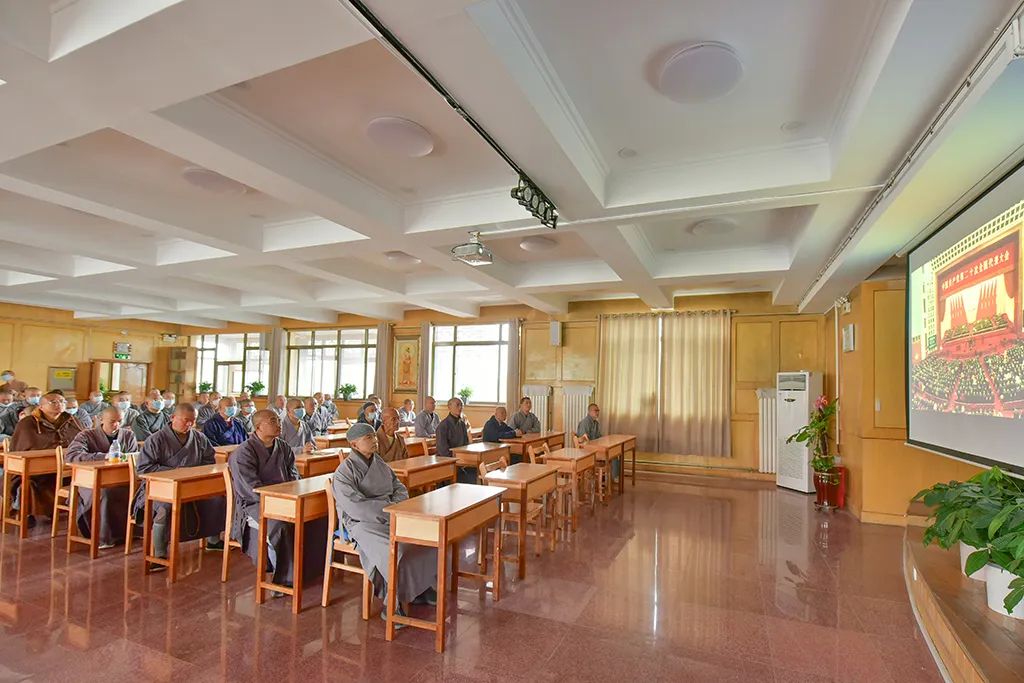 2022年10月16日上午,中国共产党第二十次全国代表大会在人民大会堂开幕,河北省佛学院全体师生、柏林禅寺常住大众在佛学院大礼堂观看了实况直播,认真聆听了习近平总书记代表第十九届中央委员会所作报告。