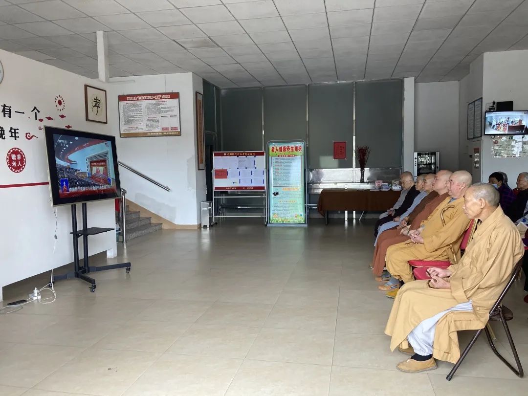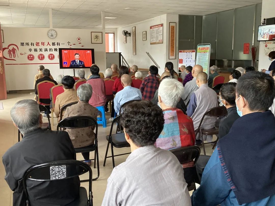 2022年10月16日上午,中国共产党第二十次全国代表大会在北京人民大会堂胜利召开。福建省佛教协会副会长、宁德市佛教协会会长、福鼎资国寺住持贤志法师带领寺院全体僧众、资国弥陀村养老院在院老人及工作人员观看实况转播,认真学习聆听习近平总书记代表十九届中央委员会向大会所作报告。