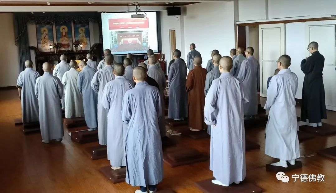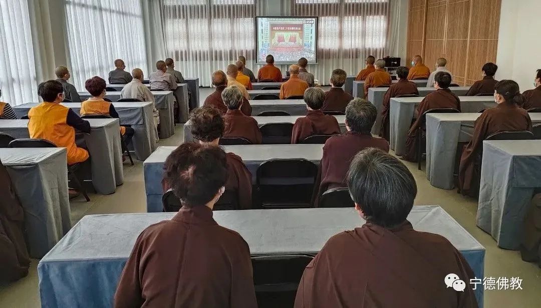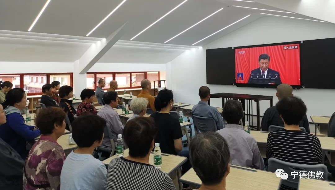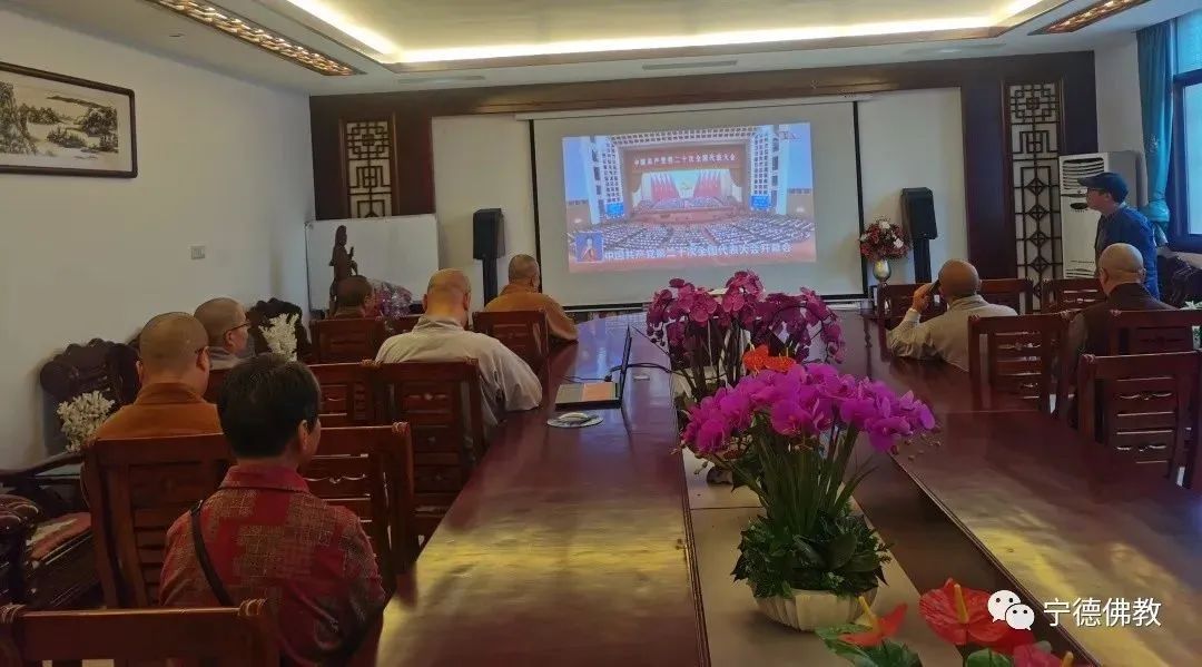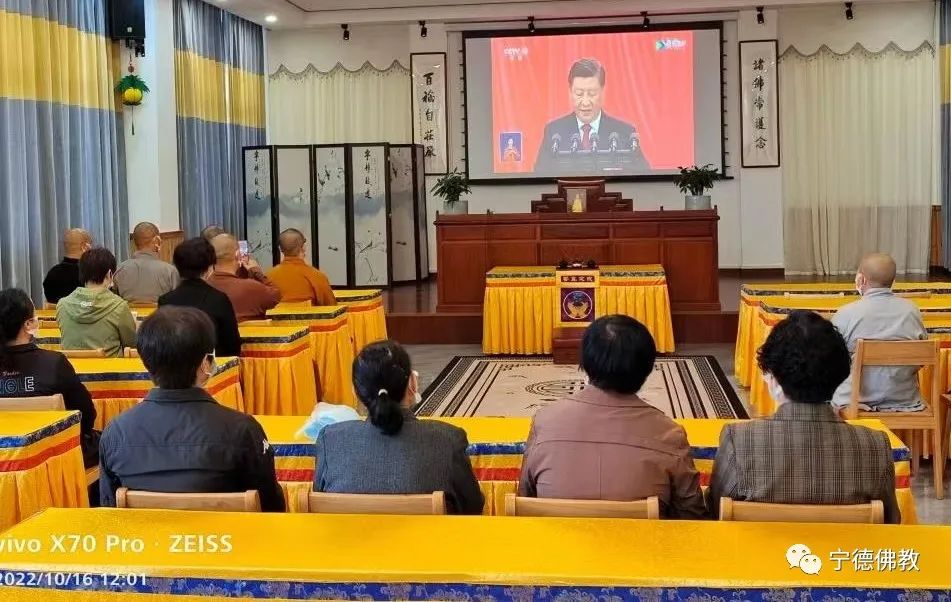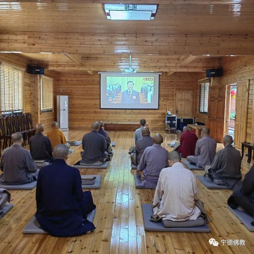 2022年10月16日上午,中国共产党第二十次全国代表大会在京开幕。为深刻领会学习党的二十大精神,宁德市佛教界各团体、院校、场所纷纷组织驻会工作人员、院校师僧、寺院僧众等集中观看中国共产党第二十次代表大会开幕会,全市佛教界认真聆听习近平总书记所作报告,共同见证这一历史时刻,感受团结、奋斗的时代脉动。
