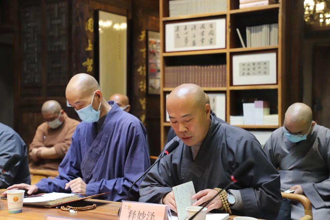会上,市佛协会长妙泽法师组织学习了党的二十大精神,第一副会长定照法师组织学习了省佛协八届三次会长会议精神,副会长兼秘书长应铁飞部署了年底前的相关工作。