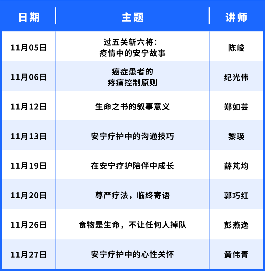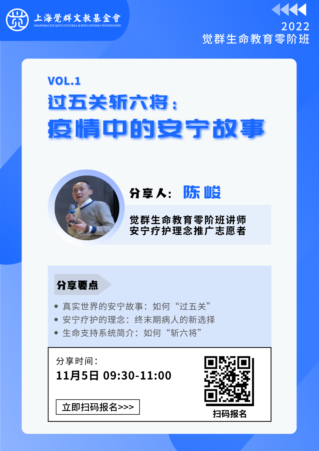 去年,觉群文教基金会推出首届“觉群生命教育零阶班”公益讲座,受到了广泛好评。今年,我们特别邀请了5位觉群安宁疗护师资班学员与3位安宁疗护资深从业人员担任嘉宾讲师,通过线上直播的形式带来多元的生命教育主题讲座,帮助大家探索生命本质,并将对生命思辨的能力运用到工作和生活中,实现自我成长,更积极地面对人生。