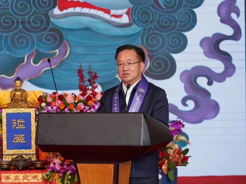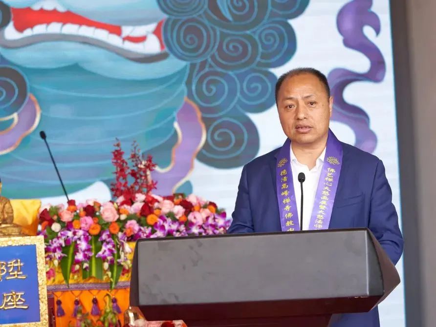 在升座典礼上,浙江省民宗委、湖州市委统战部、德清县委统战部相关领导,浙江省佛协、湖州市佛协代表分别致辞与讲话,大憨法师致答谢词。随后,领导嘉宾一起为“佛艺禅心大憨画展”活动揭幕。