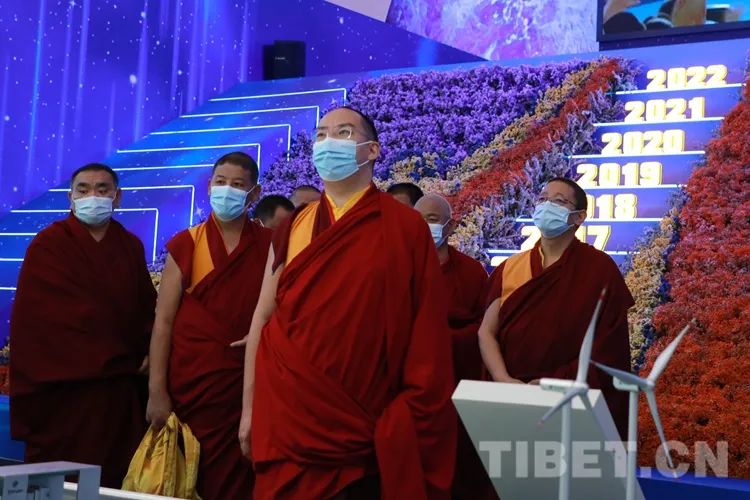 全国政协常委、中国佛教协会副会长、中国佛协西藏分会会长班禅额尔德尼•确吉杰布近日来到北京展览馆参观“奋进新时代”主题成就展。