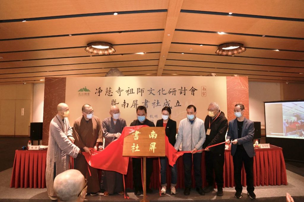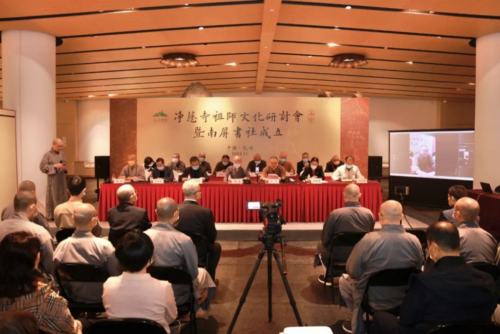 2022年11月26日上午,净慈寺举行祖师文化研讨会(南宋)暨南屏书社成立仪式。省、市统战、民宗部门分管处室领导、省、市佛协领导出席开幕仪式。来自中国社会科学院、武汉大学、台湾屏东大学、杭州佛学院等知名高校及研究机构的32名专家学者通过线上线下相结合的方式参加研讨会。