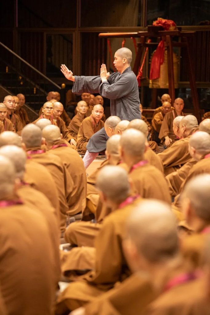 11月19日,南安雪峰禅寺举行戒期回顾晚会。众新戒比丘汇聚一堂,分享戒期一个月以来的心得体会,并各展所长表演节目,以表达对三宝、师长以及护法义工的感恩之情。