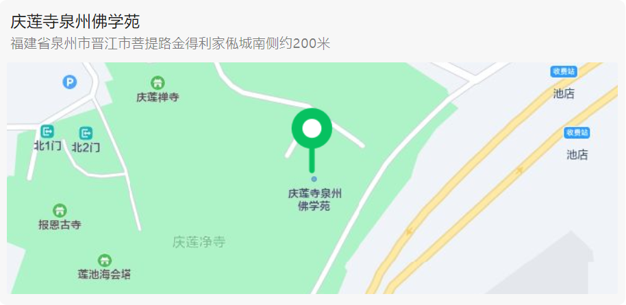 3、地址:福建省晋江市池店镇高山庆莲寺内泉州佛学苑