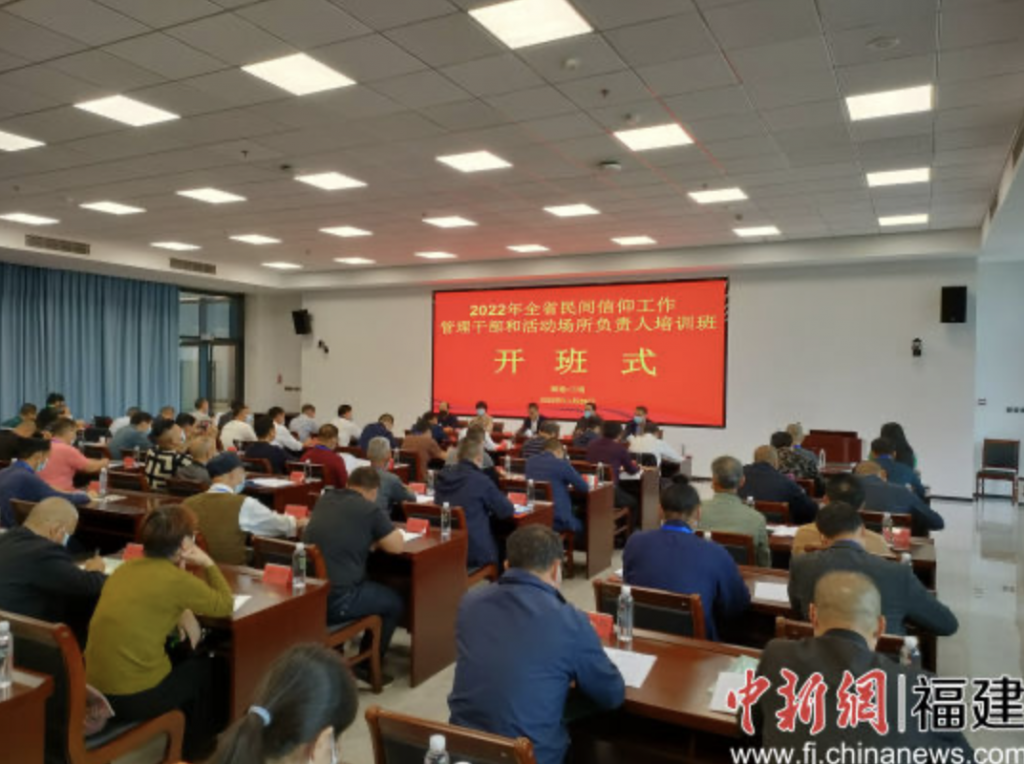 近日,2022年福建全省民间信仰工作管理干部和活动场所负责人培训班暨现场交流会在三明市委党校开班,来自全省各设区市民族宗教局负责同志、三明各县(市、区)民族宗教局局长及列入省民族宗教厅备案登记的民间信仰活动场所负责人共约90人参加此次培训。