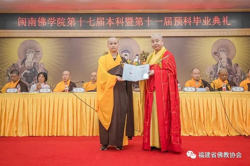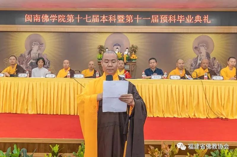 中国佛教协会副会长、省佛教协会常务副会长、闽南佛学院院长则悟法师,厦门市民族宗教局一处处长谢正辉,省佛教协会副会长定恒法师、法源法师,省佛教协会副秘书长净心法师等出席典礼,省佛教协会副会长、闽南佛学院常务副院长界象法师主持,闽南佛学院全体师生参加毕业典礼。