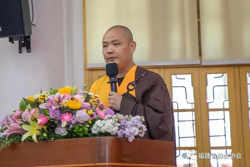 定恒法师代表厦门市佛教协会致辞,闽南佛学院全院师生以庆祝建党百年华诞为契机,积极参与厦门市佛教界“礼赞百年·同心向党 ”系列活动,开展爱党爱国爱社会主义主题教育。衷心希望每位学僧时刻铭记闽南佛学院的“悲智”院训,成为坚持佛教中国化方向的僧青年,为全面建设社会主义现代化国家,实现中华民族伟大复兴的中国梦不懈奋斗。