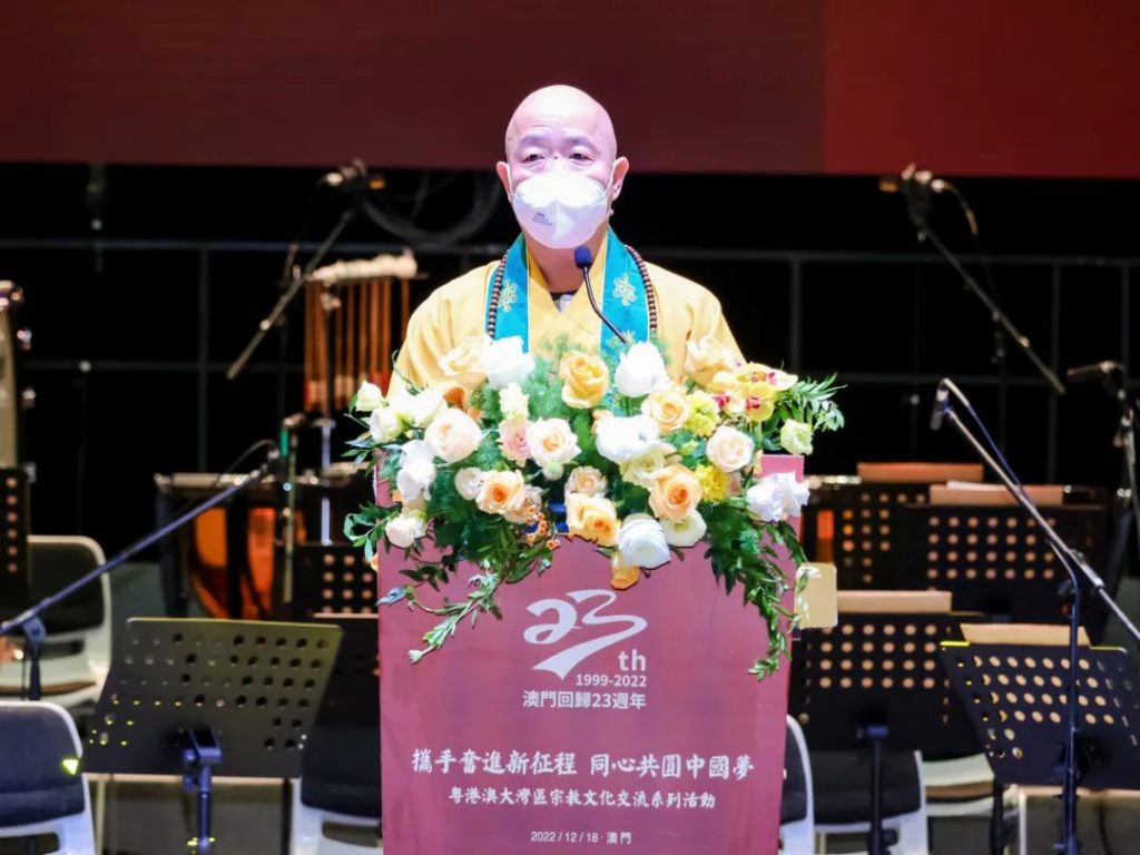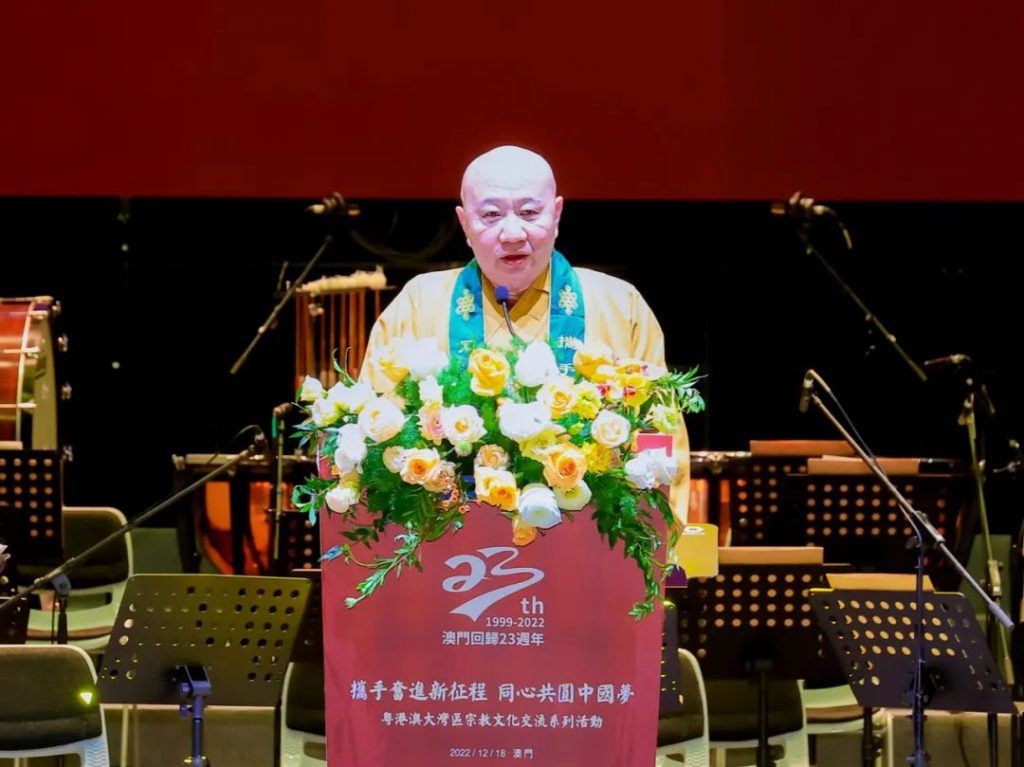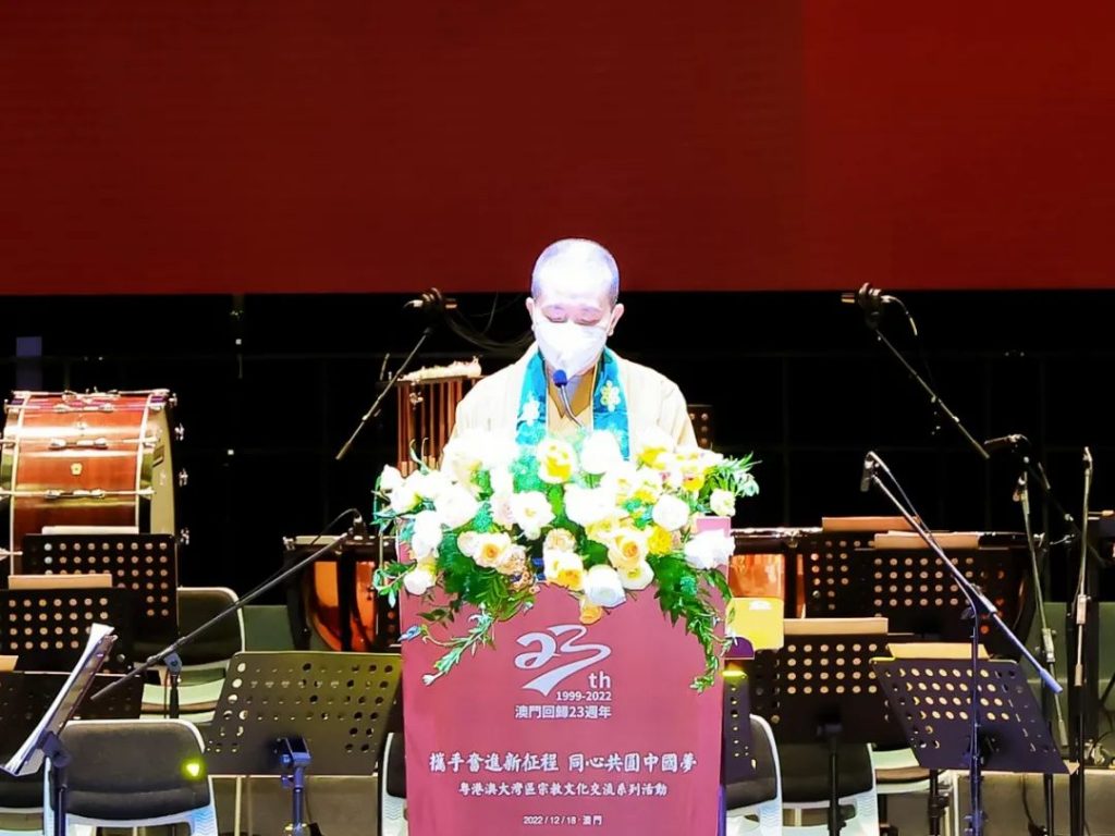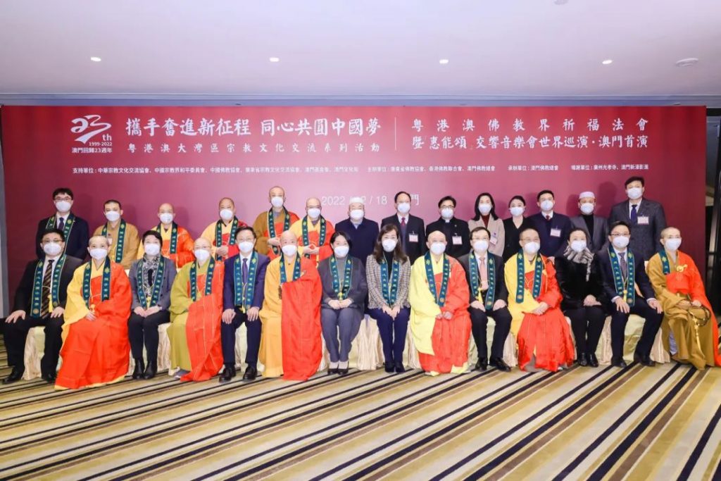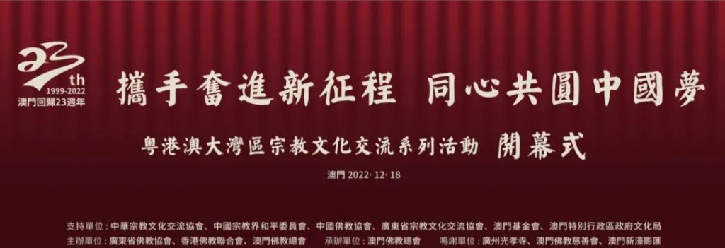 为深入学习贯彻党的二十大精神和习近平总书记在庆祝香港回归祖国25周年大会上的重要讲话精神,深入推进新时代“一国两制”实践行稳致远,庆祝澳门回归祖国23周年,2022年12月18-19日,粤港澳宗教界在澳门联合举行以“携手奋进新征程·同心共圆中国梦”为主题的粤港澳大湾区宗教文化交流系列活动。