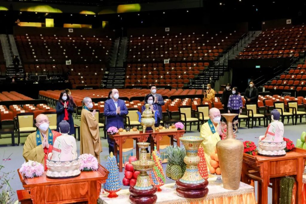 本次活动由中华宗教文化交流协会、中国宗教界和平委员会、中国佛教协会、广东省宗教文化交流协会、澳门基金会、澳门文化局作为支持单位,广东省佛教协会、香港佛教联合会、澳门佛教总会作为主办单位。澳门特别行政区第五任行政长官贺一诚在百忙之中专程于会前来到现场为澳门祈福。澳门特别行政区社会文化司司长欧阳瑜、中央人民政府驻澳门特别行政区联络办公室副主任严植婵、广东省民族宗教委主任张科等领导出席活动,澳门全国人大代表、政协委员、澳门立法会议员、澳门社会各界代表共2000人参会。