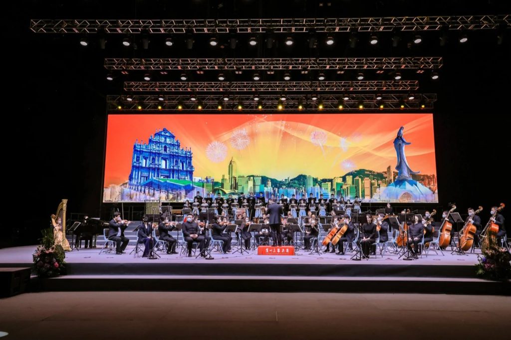 音乐会还增设返场曲目《我爱你,中国》《我和我的祖国》以及1999年澳门回归主题曲《七子之歌》等脍炙人口的爱国主题歌曲,并邀请澳门青少年参与表演,充分体现粤澳一家亲的浓浓情谊,可谓“千山一脉,万水同源”。演出引发了全场的热烈共鸣,厚植了澳门市民爱国爱澳情怀。