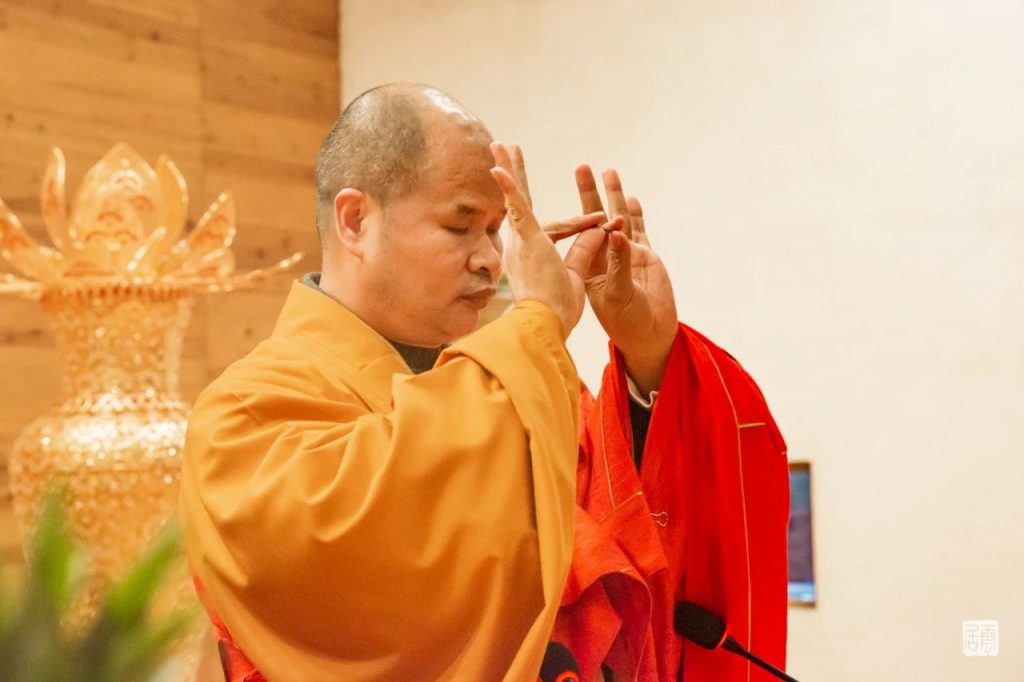 11月27日,上午八时十五分,众新戒迎请纯闻得戒大和尚为初坛做回复清净。纯闻得戒大和尚教导新戒要发清净心,受上品戒。