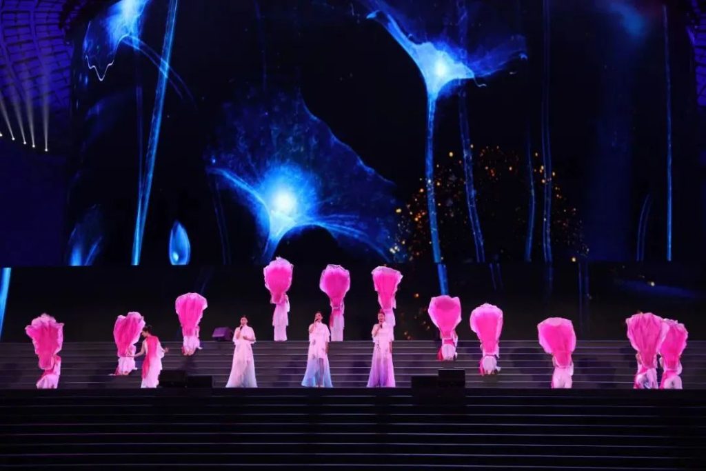 当晚举行的开幕式暨“梦应雪窦山”禅乐音乐会,把国内最新的元宇宙数实融合技术和禅乐音乐相结合。女重唱《雪窦莲花开》、自然音乐表演《悟》、多媒体歌舞《奉天而化》等8个原创节目,配合AR灯光秀和XR实时融合技术,呈现出庄严、祥和、禅意的意境,展现了雪窦山悠久深厚的历史文化和恢弘壮丽的建筑美学,让观众感受到了虚实交融、美轮美奂的沉浸式体验效果。