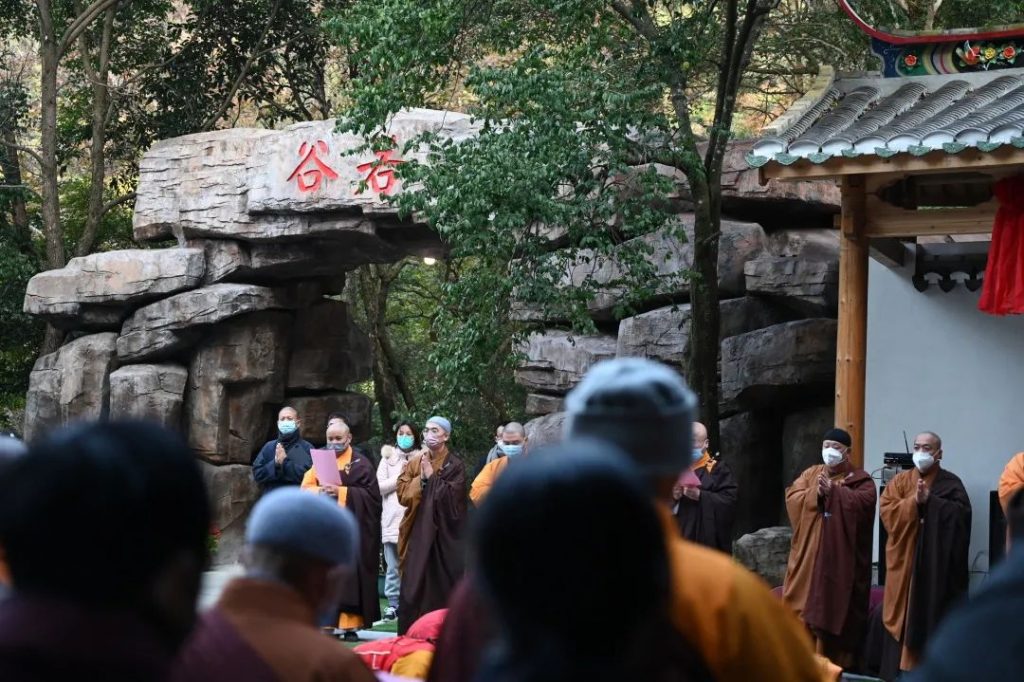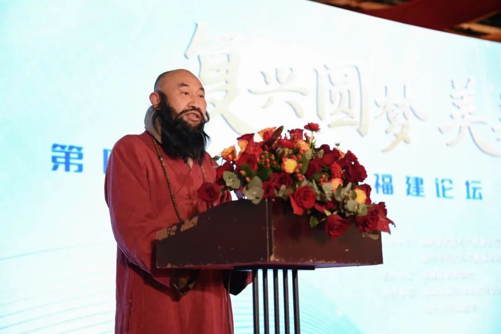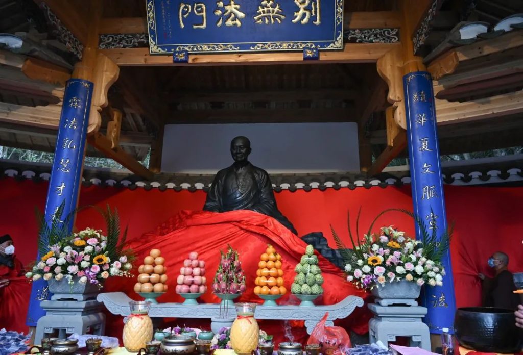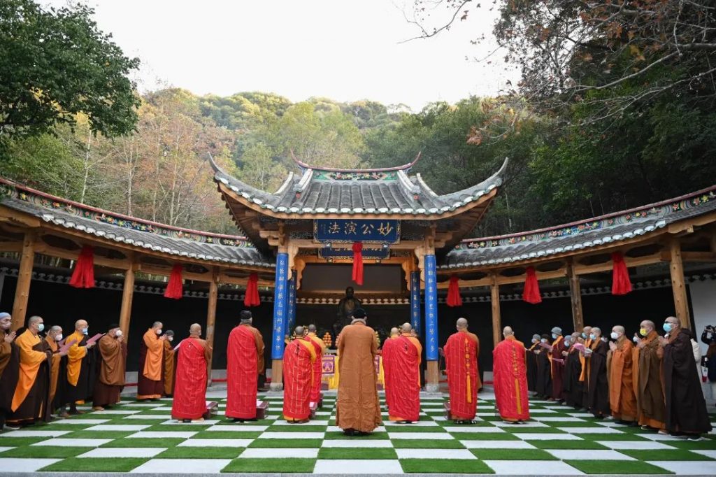 论坛开始前,为继承弘扬省佛教协会原会长、鼓山湧泉寺、厦门南普陀寺、天心永乐禅寺方丈妙湛老和尚慈悲利生、为法忘躯的悲心宏愿,妙湛法师铜像及生平壁画落成揭幕法会在鼓山演法台庄重举行。