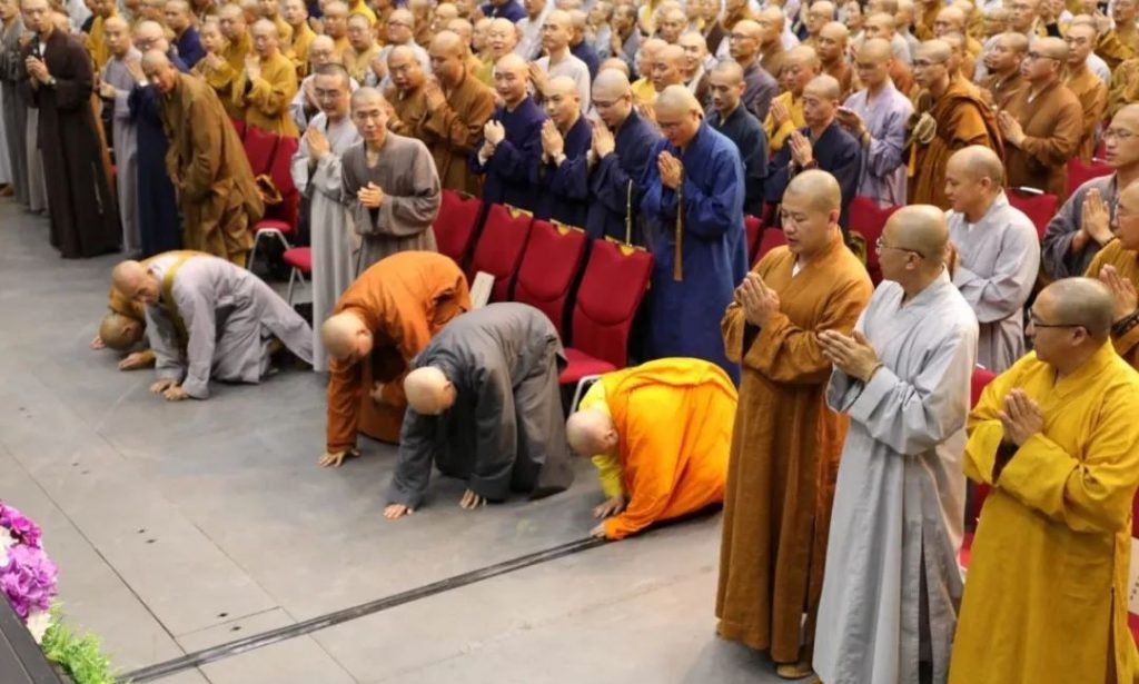 慧律法师遵循佛制,顶礼绍云长老,绍云长老乃虚云老和尚关门弟子,当代禅门泰斗,德高望重,四众敬仰。两位大德法师言传身教!互相恭敬顶礼!令见闻者信心倍增,欢喜赞叹,深受启示!正法时代,一切圣人,皆示现于世,助佛扬法。所谓“一佛扬化,千佛护持。”