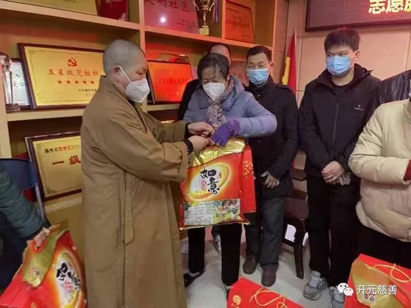 1月18日,在新春佳节即将到来之际,受福州开元志业文教慈善基金会理事长、开元寺方丈本性大和尚的委托,开元慈善基金会副理事长德星法师带领义工来到鼓东街道开元社会区,为社区困难家庭送上春节礼品。